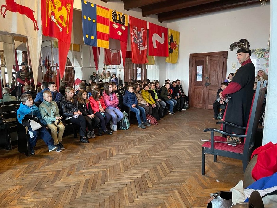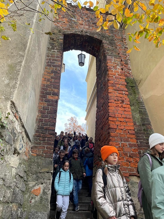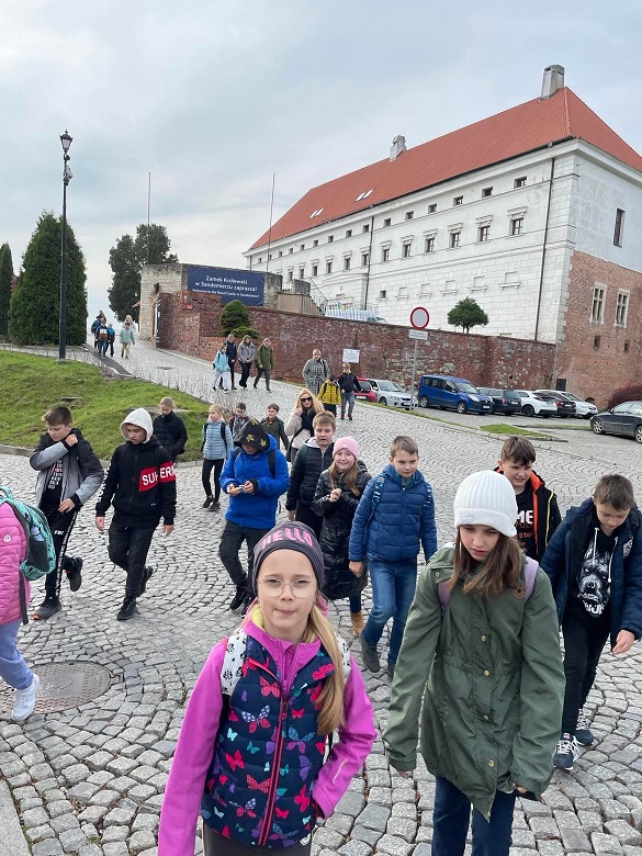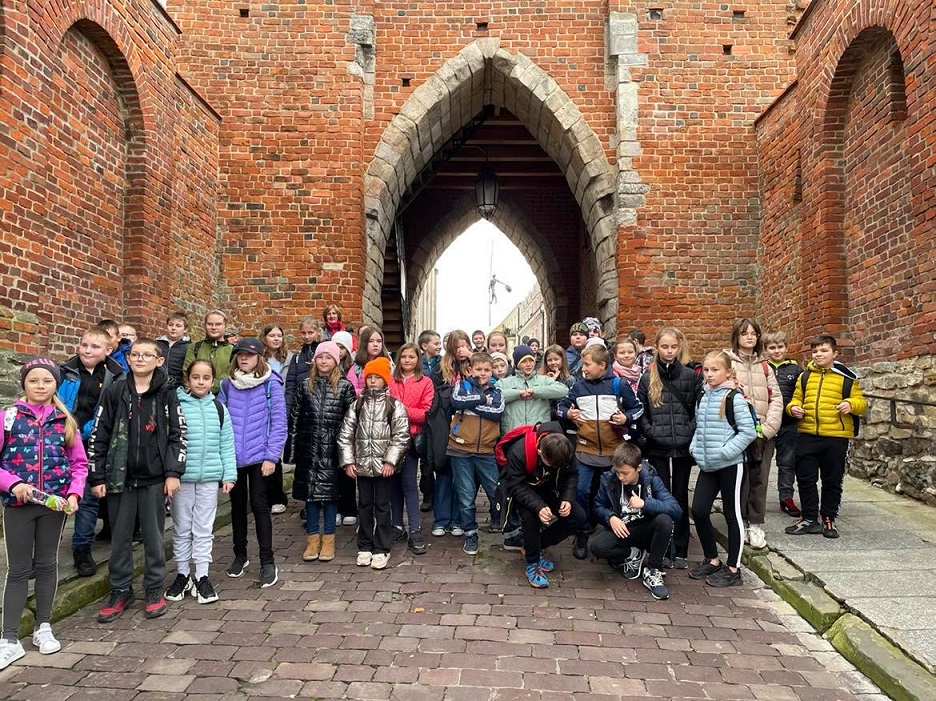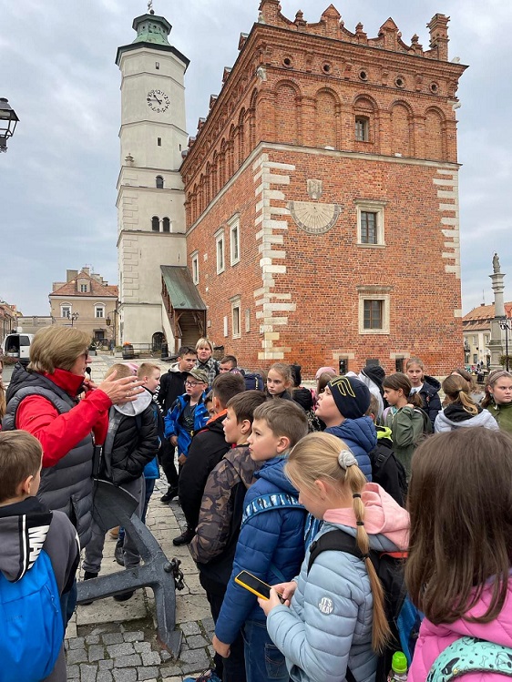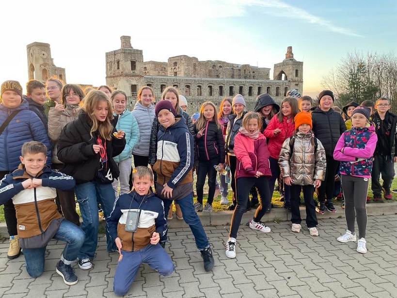 Dnia 07.11.2022 r. w ramach programu Poznaj Polskę uczniowie klas 4-6 wzięli udział w wycieczce do Sandomierza i Krzyżtoporu. Pierwszym punktem zwiedzania był ratusz , który można uznać za jeden z najpiękniejszych ratuszy w Polsce. Potem udaliśmy się pod Bramę Opatowską, jedyną zachowaną bramę wjazdową do miasta, która wchodziła w skład murów obronnych. Kolejnym celem był Kościół św. Józefa. Potem przemierzyliśmy szlak planu zdjęciowego do filmu „Ojciec Mateusz”. Następnie przeszliśmy przez Ucho Igielne w kierunku Zamku królewskiego Kazimierza Wielkiego, który został wzniesiony w XIV wieku, jednak nie przetrwał zbyt długo z racji wysadzenia go w powietrze przez Szwedów w 1656 roku. Na placu zamkowym podziwialiśmy panoramę Sandomierza i okolic. Kolejny kierunek, który obraliśmy to Kamienica Oleśnickich, w której znajduje się wejście do Podziemnej Trasy Turystycznej. Schodząc do podziemi dowiedzieliśmy się, że jest to system XIV i XV-wiecznych piwnic, w których sandomierscy kupcy składowali towary handlowe. Trasa prowadzi pod 8 kamienicami , a najgłębsze wyrobiska sięgają 12 metrów. Potem był czas na poznanie uzbrojenia w tzw. Zbrojowni. Nie zabrakło przy tym śmiechu i dobrej zabawy. Był czas na przymiarki, zdjęcia i „pojedynki na szable”. Po tak wyczerpujących punktach programu udaliśmy się na obiad w niebyle jakim miejscu a mianowicie w restauracji Ciżemka, położonej w sercu rynku sandomierskiego. Restauracja to kamienica pochodząca z XVI wieku. Po obiedzie wspólnie z opiekunami; p. Iwoną Jędrzejczyk, p. Joanną Nowak, p. Adaminą Marek-Kot i p. Martą Rogalską zakupiliśmy pamiątki i sandomierskie słodycze dla bliskich. Posileni wyruszyliśmy w stronę autokaru, by zaliczyć ostatni punkt naszego programu – zamek Krzyżtopór. Są to ruiny powstałej w XVII wieku rezydencji pałacowej otoczonej fortyfikacjami bastionowymi położonej w miejscowości Ujazd w województwie świętokrzyskim. Była to jedna z największych budowli pałacowych w Europie przed powstaniem Wersalu. Od 2018 ma status pomnika historii. Kiedy opuszczaliśmy ruiny zamku zapadał zmrok co dodawało tajemniczości temu miejscu, ale i było dla nas sygnałem, że należy wracać do domu.