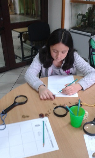 i zwierząt w terenie, rozbudzanie zainteresowań przyrodą. Dzieci miały do dyspozycji lupy, przez które wypatrywały biedronki, pająki i obserwowały roślin w powiększeniu. Członkowie koła uzupełniały karty pracy. Podczas zajęć w terenie korzystały z atlasów roślin i zwierząt.