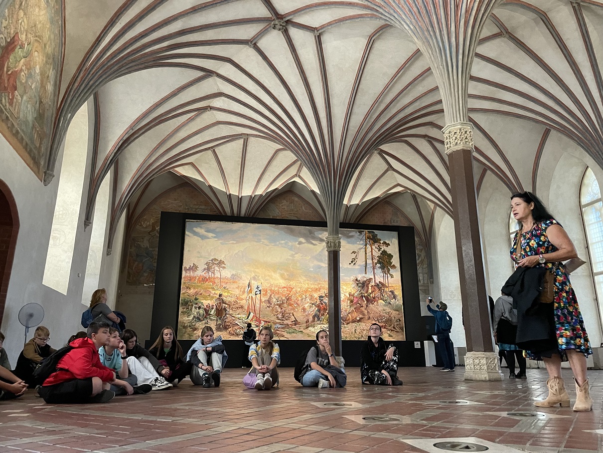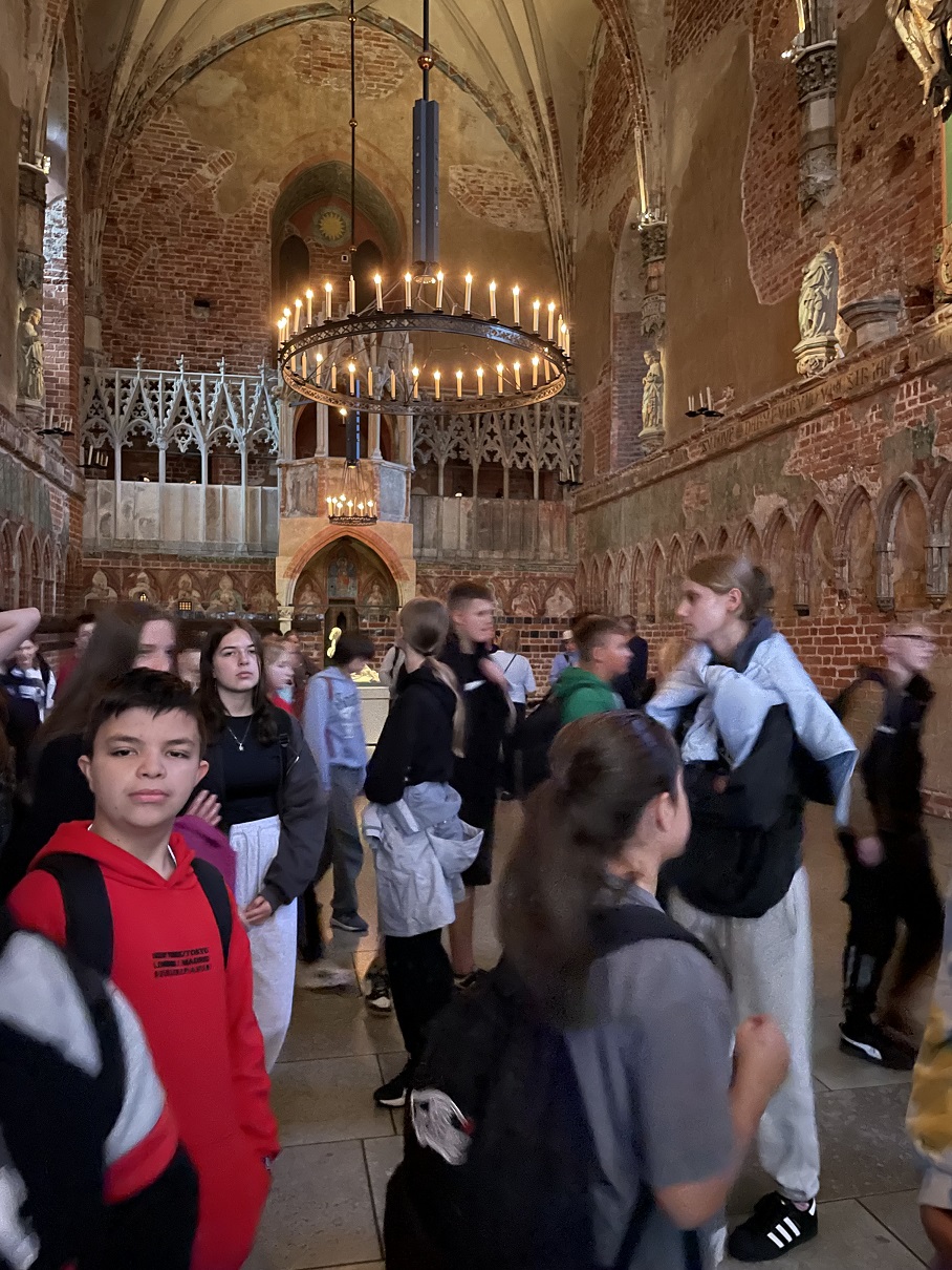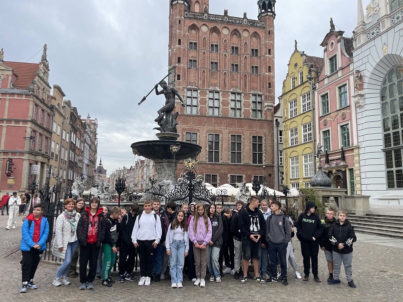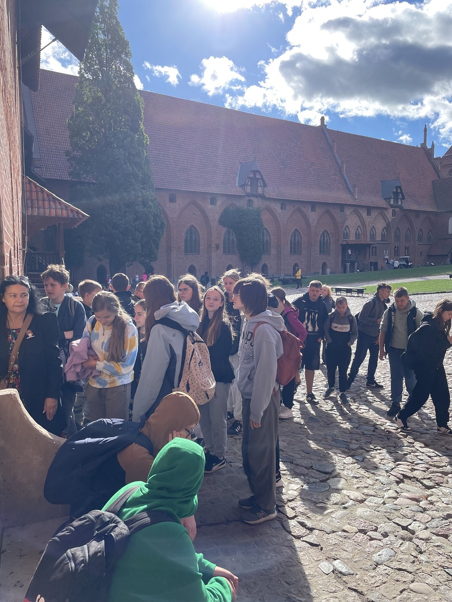 Uczniowie klasy siódmej i ósmej wzięli udział w trzydniowej wycieczce do Gdańska i Malborka, która odbyła się w dniach 25-27 września 2024 r.. Uczniom naszej szkoły udało się skorzystać z programu Ministerstwa Edukacji Narodowej „Podróże z klasą”. Jest to program, dzięki któremu uczniowie szkół podstawowych i ponadpodstawowych mają okazję poznać polską tradycję, kulturę oraz osiągnięcia nauki. Z pewnością była to podróż do różnych zakątków naszej historii, czego dowodem jest odwiedzenie Muzeum II Wojny Światowej w Gdańsku. To miejsce było pierwszym punktem na naszej liście, choć znaleźliśmy też czas, aby przywitać się z polskim morzem w Gdańsku Brzeźno. Po zwiedzaniu jedno z największych obiektów wystawowych w Europie udaliśmy się do ośrodka wypoczynkowego, aby zjeść obiadokolację i pójść na spacer nad morze w miejscowości Jantar. Drugi dzień był równie owocny w wiadomości z zakresu historii II wojny światowej i historii powojennej. Po śniadaniu pojechaliśmy na Westerplatte, aby tam poznać historię obrony polskiego Wybrzeża podczas wojny obronnej w 1939 r. . Niezwykłą atrakcją okazał się rejs statkiem do centrum Gdańska. Podczas rejsu podziwialiśmy pracę ludzi przy remoncie statków na tle ogromnych żurawi rozpościerających się dookoła. Potem wysiedliśmy w centrum Gdańska, by tam poznać historię tego pięknego nadmorskiego miasta. Spacerowaliśmy najbardziej znanymi ulicami miasta jak ul. Długa, ul. Piwna czy ul. Mariacka. Zatrzymaliśmy się przy Fontannie Neptuna, by tam podziwiać Dom Artusa czy też Ratusz Miasta Gdańsk. Potem mijając pięknie odrestaurowaną zbrojownię udaliśmy się do Bazyliki Mariackiej w Gdańsku zwanej często „Koroną Gdańska”. Na koniec skierowaliśmy się w kierunku Europejskiego Centrum Solidarności, które powstało na miejscu dawnej Stoczni Gdańskiej. Tutaj poznaliśmy historię powojenną, historię ludzi, którzy tworzyli „Solidarność” , którzy walczyli o prawa dla siebie, dla bliskich i dla przyszłych pokoleń. Po kolejnym wyczerpującym dniu przyszedł czas na ciepły posiłek i kiełbaski z grilla, gdyż aura pogodowa nie pozwoliła nam cieszyć się ogniskiem. Ostatni dzień, choć wydawał się męczący, przyniósł nam wiele wrażeń. Wcześnie rano pożegnaliśmy się z morzem na plaży w Jantarze, a po sytym śniadaniu udaliśmy się autokarem w kierunku Malborka. W Malborku odwiedziliśmy zamek krzyżacki, średniowieczną twierdzę krzyżacką , w której poznaliśmy historię osiedlenia się Krzyżaków na naszych ziemiach. Warto było zobaczyć to miejsce z uwagi na fakt, iż jest to zabytek znajdujący się na Liście Światowego Dziedzictwa UNESCO. Potem przyszedł czas na upragniony posiłek i powrót do domu, gdzie czekali stęsknieni rodzice. Należy wspomnieć, że to była pierwsza tak długa wycieczka dla siódmo- i ósmoklasistów. Po wycieczce pozostało wiele wspomnień, do których z pewnością nie raz będziemy wracać. Opiekę nad uczniami sprawowali wychowawcy : p. Ilona Iskrzyńska i p. Iwona Jędrzejczyk oraz p. Agnieszka Czechowska i p. Karolina Krawentek .