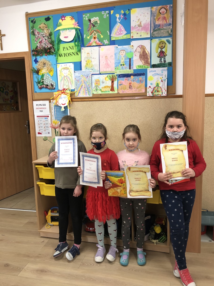 Dnia 19 marca 2021 r. w świetlicy szkolnej SP im. Janusza Korczaka w Babach odbyło się rozstrzygnięcie konkursu plastycznego „Pani Wiosna”, którego organizatorem była świetlica szkolna i Rada Rodziców. Celem konkursu było rozwijanie zdolności plastycznych, zmysłu estetycznego, wyobraźni, uwrażliwienie na piękno przyrody. Dziękujemy wszystkim Dzieciom, które wzięły udział w konkursie i włożyły mnóstwo trudu, w wykonanie przepięknych prac plastycznych, których do świetlicy wpłynęło aż 38. Jury w składzie: Maria Bylinka, Renata Szklarek, Elżbieta Królikiewicz długo obradowało nad wyłonieniem zwycięzców i ostatecznie postanowiło nagrodzić następujące dzieci.