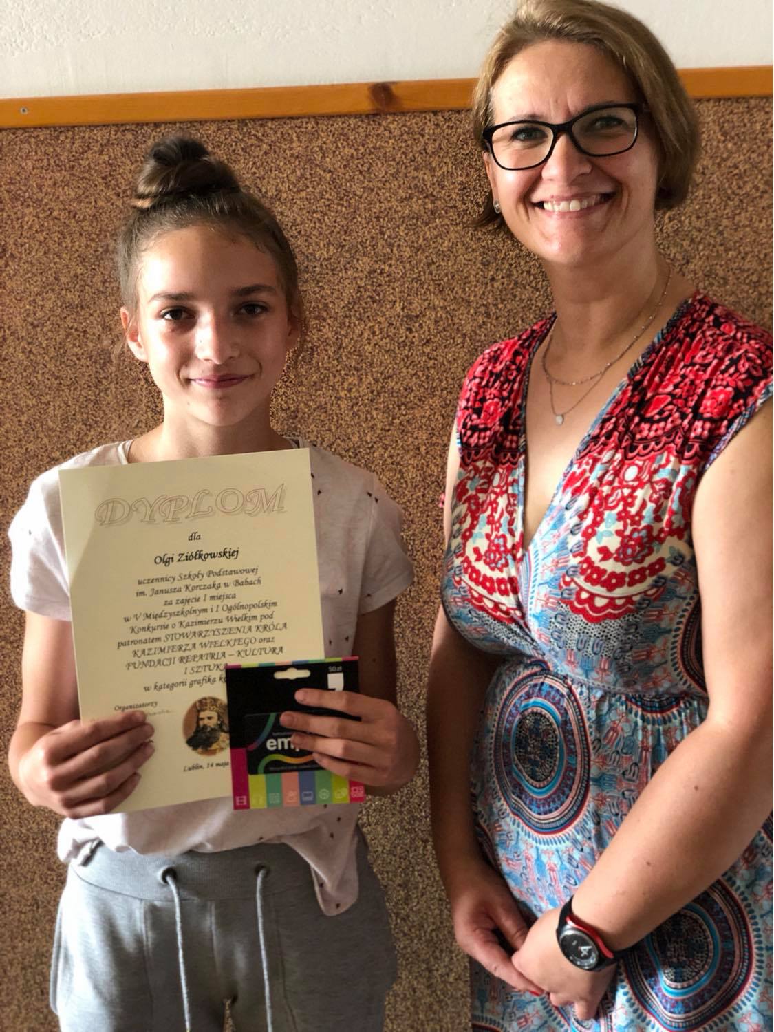 Uczennica klasy 7 Olga Ziółkowska zajęła I miejsce w Ogólnopolskim Konkursie o Kazimierzu Wielkim organizowanym przez SP nr 30 im. Króla Kazimierza Wielkiego w Lublinie. Konkurs miał na celu przybliżenie postaci króla Kazimierza Wielkiego, rozwijanie szacunku do tradycji narodowych i patriotycznych oraz rozbudzanie postaw twórczych wśród dzieci i młodzieży. Olga stworzyła ciekawą grafikę komputerową przedstawiającą postać Kazimierza Wielkiego.