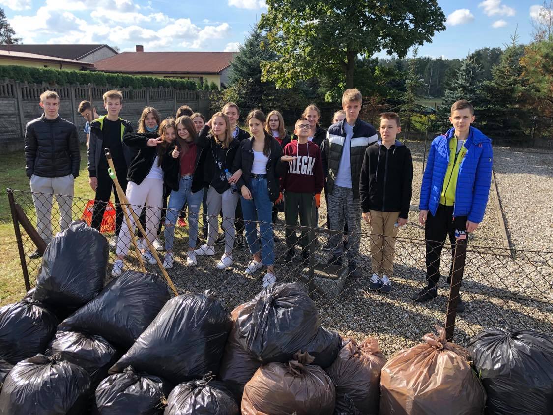 1października uczniowie klas VI-VIII zaopatrzeni w worki i jednorazowe rękawiczki po raz kolejny uczestniczyli w akcji ekologicznej. Rozpoczęto ją pogadanką na temat bezpieczeństwa oraz celów głównych. Dzieci z klasy szóstej sprzątały teren wokół szkoły. Klasy siódme sprzątały okolice kościoła parafialnego. Klasa ósma porządkowała cmentarz wojenny. Dzięki pięknej, słonecznej pogodzie akcja przebiegła szybko i sprawnie, a efekty pracy uczniów były zadowalające. Czynny udział w tym przedsięwzięciu pokazał uczniom,