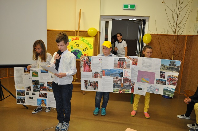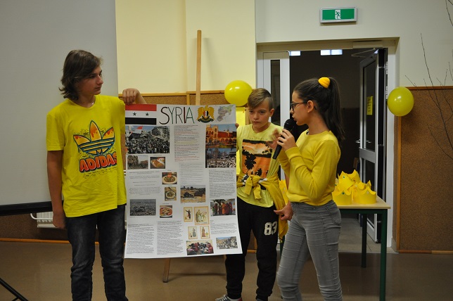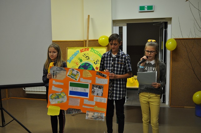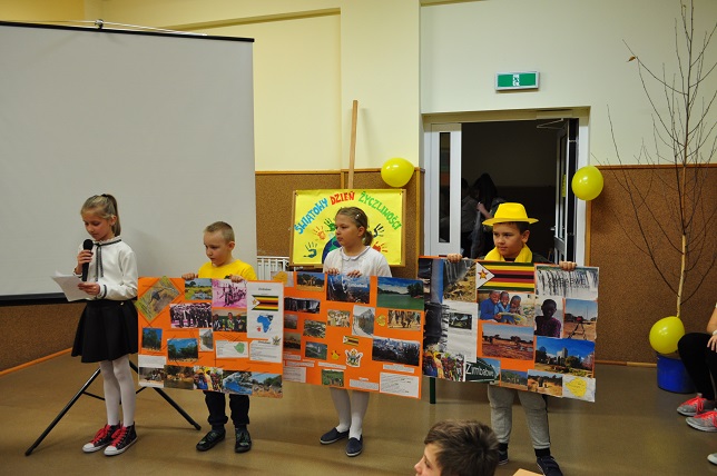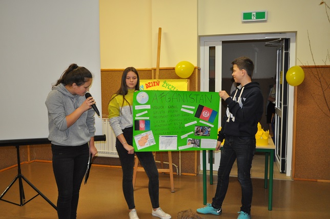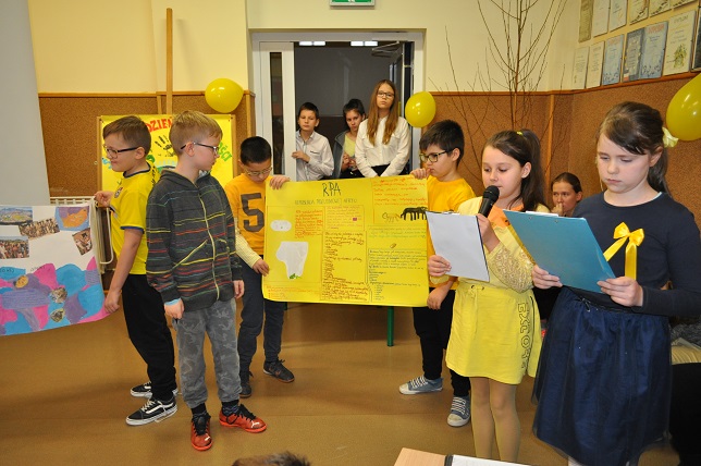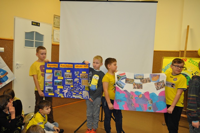 W drugiej części apelu zostały zaprezentowane plakaty na temat wybranych krajów, które przygotowywali uczniowie poszczególnych klas w ramach przystąpienia szkoły do Edukacyjnego Projektu UNICEF pt:"Wszystkie Kolory świata".