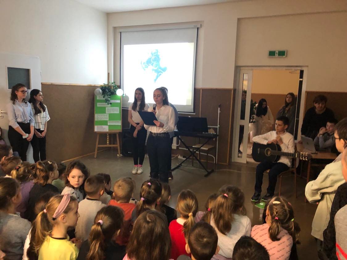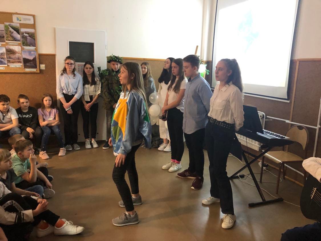 dowiedzieli się, jak dbać o środowisko i otaczającą nas przyrodę. Uczniowie brawurowo wykonali piosenki „Hej ,