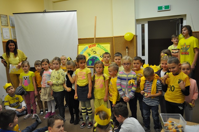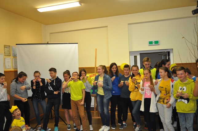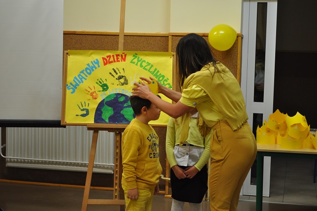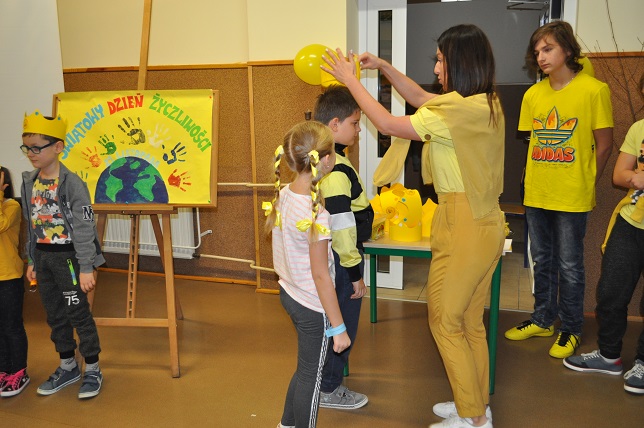 W tym dniu w naszej szkole dominował kolor żółty- kolor optymizmu, ciepła i radości. Uczniowie i nauczyciele manifestowali swą życzliwość ubierając się również na żółto lub dekorując swój strój żółtym akcentem. Odbyła się również "Loteria Życzliwości"- zabawa polegająca na wylosowaniu osoby,wobec której będziemy wyjątkowo życzliwi,obdarzymy ją miłym słowem, spędzimy razem czas.