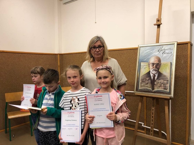 W piątek, 3 czerwca w naszej szkole odbyło się potrójne święto: Dzień Patrona Szkoły, Dzień Dziecka i Dzień Sportu. Ten dzień zaczęliśmy od turnieju „Jeden z dziesięciu”, który przygotowała p. Iwona Jędrzejczyk. Turniej odbył się na podobnych zasadach co turniej telewizyjny pod tą samą nazwą, jednak pytania dotyczyły tylko i wyłącznie życia i twórczości Janusza Korczaka. Zwyciężczynią turnieju została Anna Cybula z kl. 8. Po konkursie wiedzy uczniowie klas 5-7 recytowali wiersze związane z naszym Patronem Szkoły. Uczniów przygotowała p. Agnieszka Czechowska. Po recytacji zostały wręczone nagrody i wyróżnienia za Konkurs na Pocztówkę do Janusza Korczaka i Konkurs na Najładniejszą Koronę Króla Maciusia. Konkursy zostały zorganizowane przez szkolną bibliotekę , inicjatorem konkursów była p. Elżbieta Fortak- Florczyk. Pani Teresa Włodarczyk wręczyła nagrody w konkursie ortograficznym i konkursie recytatorskim w klasach młodszych. Wszystkim zwycięzcom gratulujemy i życzymy dalszych sukcesów !!! Potem był czas na rozgrywki sportowe, w których chłopcy mierzyli się w piłce nożnej a dziewczęta w piłce siatkowej. Tutaj nad wszystkim czuwała p. Joanna Nowak, pozostali nauczyciele i uczniowie gorąco kibicowali drużynom.
