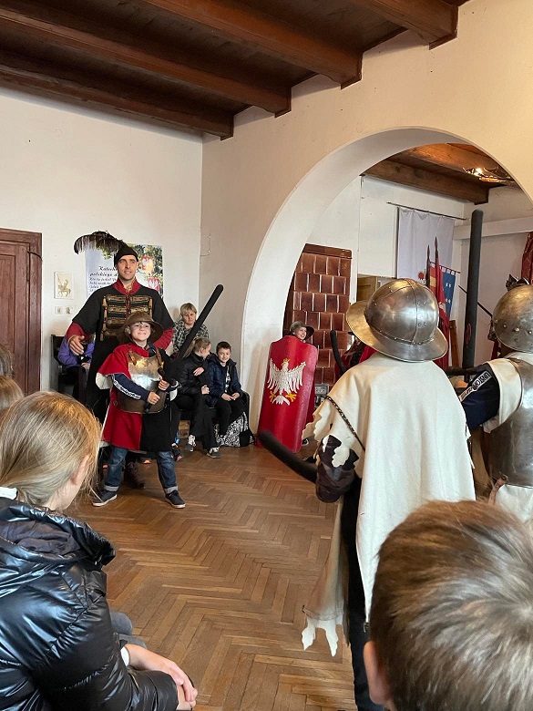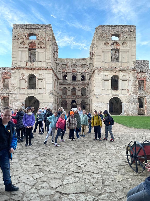 Dnia 07.11.2022 r. w ramach programu Poznaj Polskę uczniowie klas 4-6 wzięli udział w wycieczce do Sandomierza i Krzyżtoporu. Pierwszym punktem zwiedzania był ratusz , który można uznać za jeden z najpiękniejszych ratuszy w Polsce. Potem udaliśmy się pod Bramę Opatowską, jedyną zachowaną bramę wjazdową do miasta, która wchodziła w skład murów obronnych. Kolejnym celem był Kościół św. Józefa. Potem przemierzyliśmy szlak planu zdjęciowego do filmu „Ojciec Mateusz”. Następnie przeszliśmy przez Ucho Igielne w kierunku Zamku królewskiego Kazimierza Wielkiego, który został wzniesiony w XIV wieku, jednak nie przetrwał zbyt długo z racji wysadzenia go w powietrze przez Szwedów w 1656 roku. Na placu zamkowym podziwialiśmy panoramę Sandomierza i okolic. Kolejny kierunek, który obraliśmy to Kamienica Oleśnickich, w której znajduje się wejście do Podziemnej Trasy Turystycznej. Schodząc do podziemi dowiedzieliśmy się, że jest to system XIV i XV-wiecznych piwnic, w których sandomierscy kupcy składowali towary handlowe. Trasa prowadzi pod 8 kamienicami , a najgłębsze wyrobiska sięgają 12 metrów. Potem był czas na poznanie uzbrojenia w tzw. Zbrojowni. Nie zabrakło przy tym śmiechu i dobrej zabawy. Był czas na przymiarki, zdjęcia i „pojedynki na szable”. Po tak wyczerpujących punktach programu udaliśmy się na obiad w niebyle jakim miejscu a mianowicie w restauracji Ciżemka, położonej w sercu rynku sandomierskiego. Restauracja to kamienica pochodząca z XVI wieku. Po obiedzie wspólnie z opiekunami; p. Iwoną Jędrzejczyk, p. Joanną Nowak, p. Adaminą Marek-Kot i p. Martą Rogalską zakupiliśmy pamiątki i sandomierskie słodycze dla bliskich. Posileni wyruszyliśmy w stronę autokaru, by zaliczyć ostatni punkt naszego programu – zamek Krzyżtopór. Są to ruiny powstałej w XVII wieku rezydencji pałacowej otoczonej fortyfikacjami bastionowymi położonej w miejscowości Ujazd w województwie świętokrzyskim. Była to jedna z największych budowli pałacowych w Europie przed powstaniem Wersalu. Od 2018 ma status pomnika historii. Kiedy opuszczaliśmy ruiny zamku zapadał zmrok co dodawało tajemniczości temu miejscu, ale i było dla nas sygnałem, że należy wracać do domu.