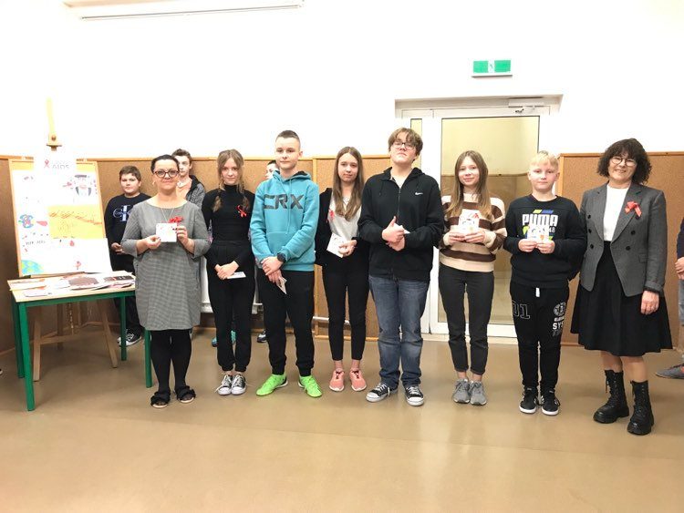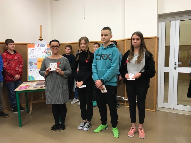 1 grudnia to Światowy Dzień Walki z AIDS. W naszej szkole odbyły się konkursy: plastyczny o tematyce HIV\AIDS zorganizowanym przez p. E. Jończyk oraz Konkurs wiedzy teoretycznej o wyżej wymienionej tematyce i uzależnieniach, który zorganizowała p. B. Nowak.