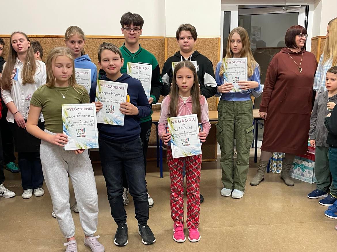 apelu wręczone zostały nagrody w konkursach: Gminny Konkurs Patriotyczny, szkolny konkurs ,,Anglia w Obiektywie'', szkolny konkurs ,,Jesienna suknia Matki Bożej'', Ogólnopolski konkurs ortograficzny, powiatowy konkurs recytatorski ,,Duch Romantyzmu".