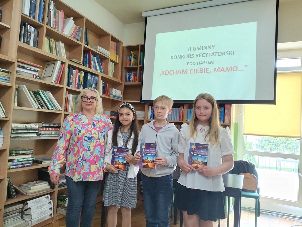 W dniu 26 maja 2023 r. z okazji Dnia Matki uczniowie naszej szkoły wzięli udział w gminnym konkursie recytatorskim ,,Kocham Ciebie, Mamo" zorganizowanym w Szkole Podstawowej w Moszczenicy. Naszą szkołę reprezentowali uczniowie kl. IV -Maja Szymańska i Maria Deka, kl. V -Wojciech Olejnik, kl. VI -Aleksandra Słowianek, kl. VII - Szymon Król i Oliwia Kawnik. Konkurs rozwijał kulturę ,,żywego słowa". Młodzież mogła rozwinąć umiejętności recytatorskie. Miło nam poinformować, iż nagrody w tym konkursie otrzymały uczennice: Maja Szymańska i Aleksandra Słowianek. Uczniów przygotowały polonistki: Iwona Jędrzejczyk i Agnieszka Czechowska, opiekę na konkursie sprawowała Edyta Jończyk.