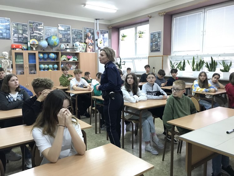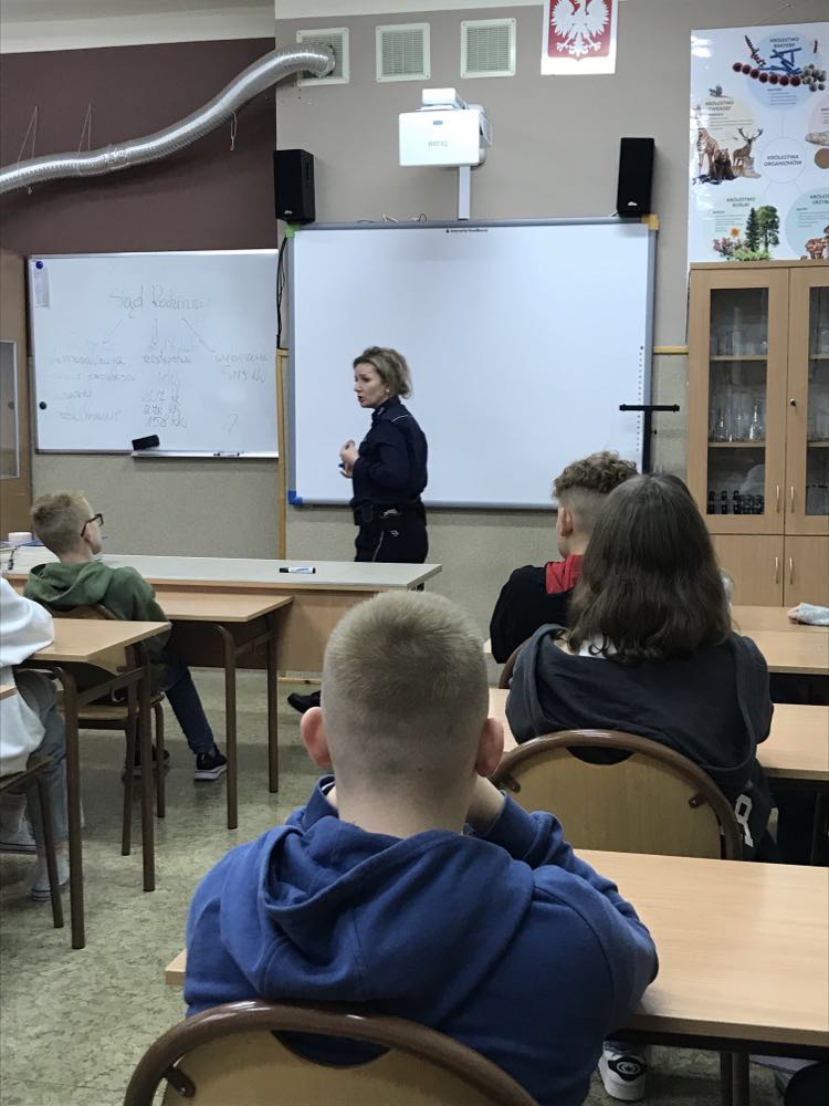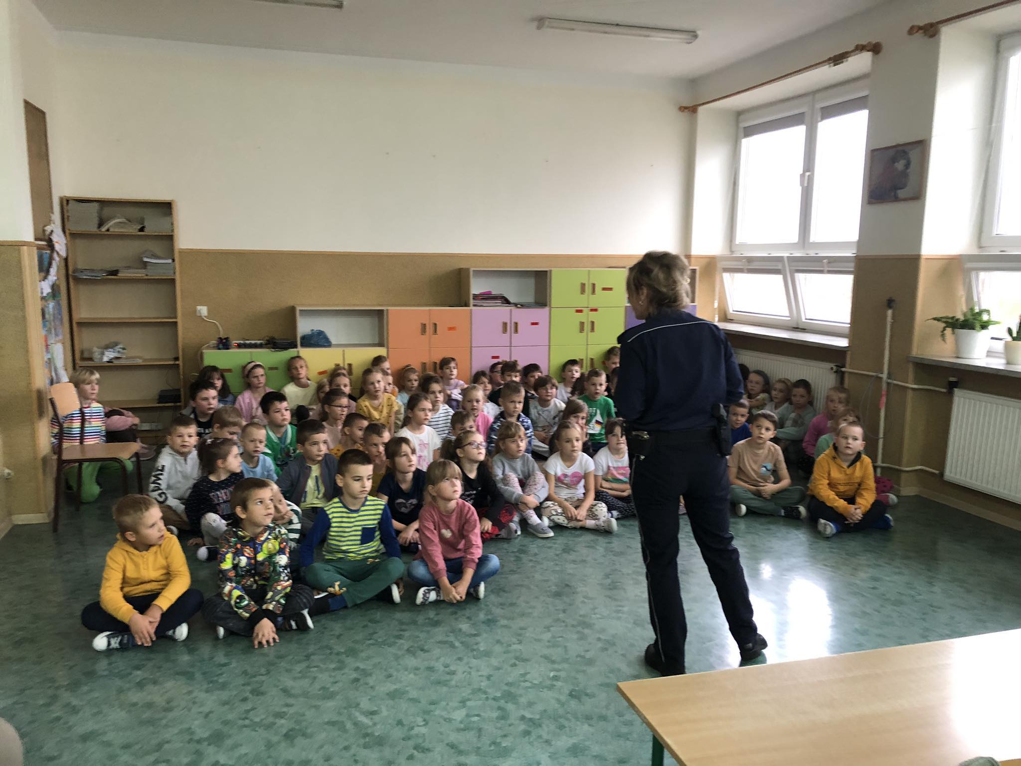W środę odbyło się spotkanie z Katarzyną Dębińską, panią policjant z Komendy Miejskiej Policji w Piotrkowie Trybunalskim. Uczniowie klas 0 -3 dowiedziały się o bezpieczeństwie w ruchu drogowym oraz o pracy w policji. Uczniowie klas 4-6 oraz 7-8 wysłuchali pogadanki na temat konsekwencji prawnych, jakie ponoszą małoletni za popełnione wykroczenia, o hejcie, cyberprzemocy oraz o skutkach zażywania środków psychoaktywnych.