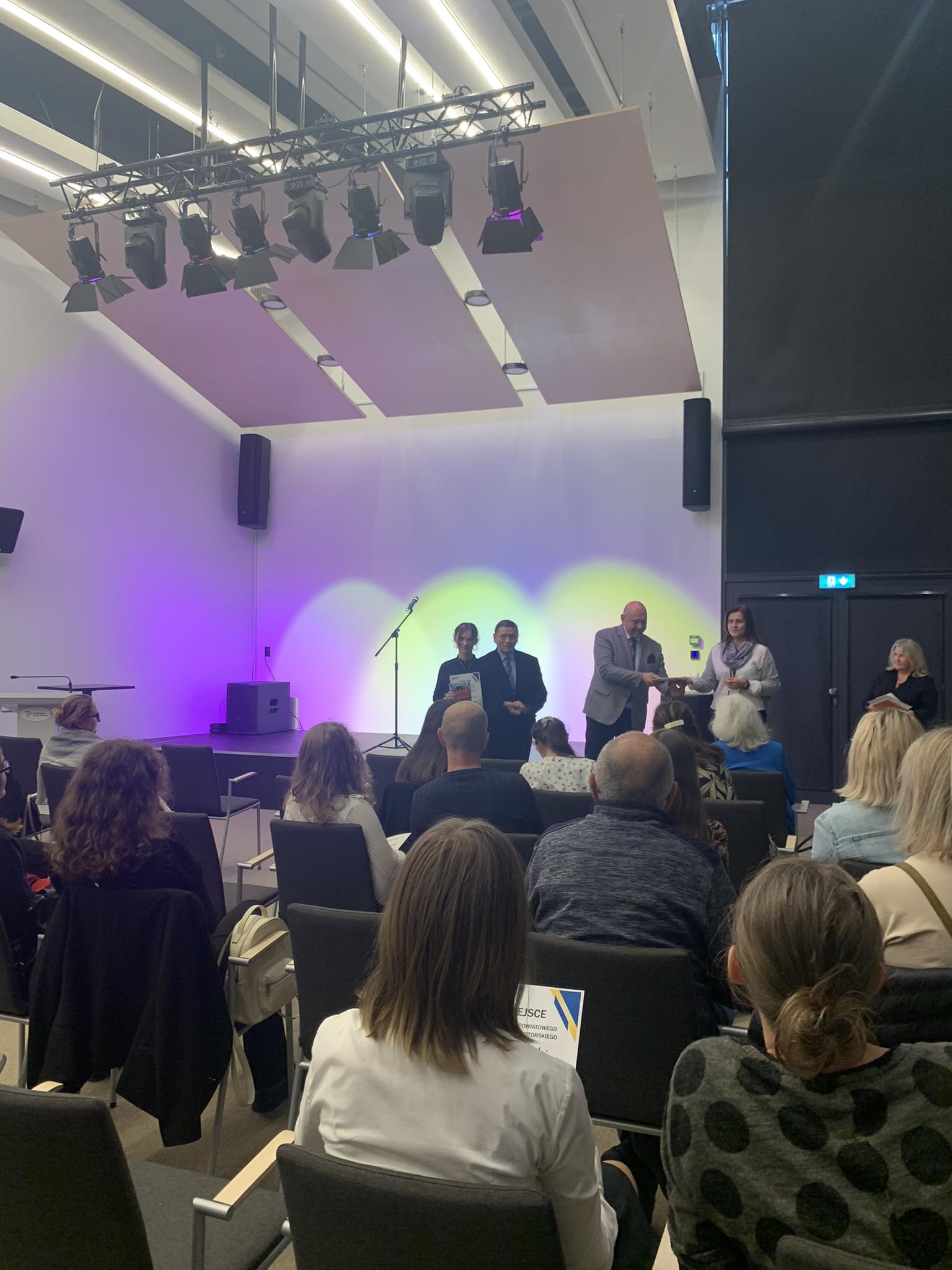 W dniu 26. października 2023 r. uczniowie Szkoły Podstawowej im. J. Korczaka w Babach wzięli udział w XV Powiatowym Turnieju Recytatorskim ,,Młodopolski bunt" zorganizowanym przez Miejską Bibliotekę Publiczną im. A. Próchnika w Piotrkowie Tryb. Miło nam poinformować, iż uczennica kl. 7 Aleksandra Słowianek zdobyła II miejsce w zmaganiach recytatorskich, a uczeń kl. 8 Szymon Król otrzymał wyróżnienie w tym konkursie. Sponsorem nagród było starostwo powiatu piotrkowskiego. Uczniowie otrzymali upominki książkowe, a laureatka II miejsca bon upominkowy do księgarni Empik o wartości 150 zł. Młodzież zwiedziła bibliotekę, obejrzała aktualne wystawy tematyczne, m. in. wystawę prac Elżbiety Makagon - makatki, stroje. Uczniów do konkursu przygotowała polonistka Agnieszka Czechowska. Zwycięzcom gratulujemy!