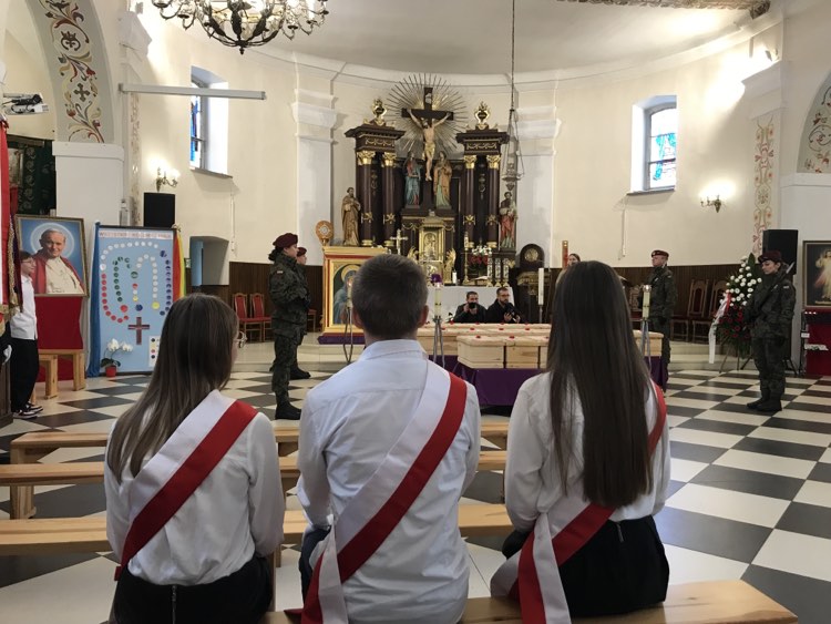 27 października uczniowie naszej szkoły wraz z opiekunem SU Adaminą Marek-Kot uczestniczyli w pogrzebie państwowym, 25 ofiar zbrodni niemieckiej z lipca 1940 r., ekshumowanych z lasu moszczenickiego w maju br. przez Biuro Upamiętniania Walki Męczeństwa IPN. Przez ponad 80 lat o to miejsce pamięci narodowej, dbali okoliczni mieszkańcy. Szczątki pomordowanych spoczęły we wspólnym grobie na cmentarzu w Moszczenicy. Pochówek poprzedziła msza święta w kościele parafialnym pw. Podwyższenia Świętego Krzyża, celebrowana przez proboszcza ks. Władysława Pasia.