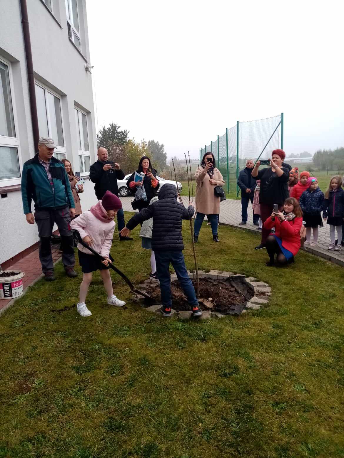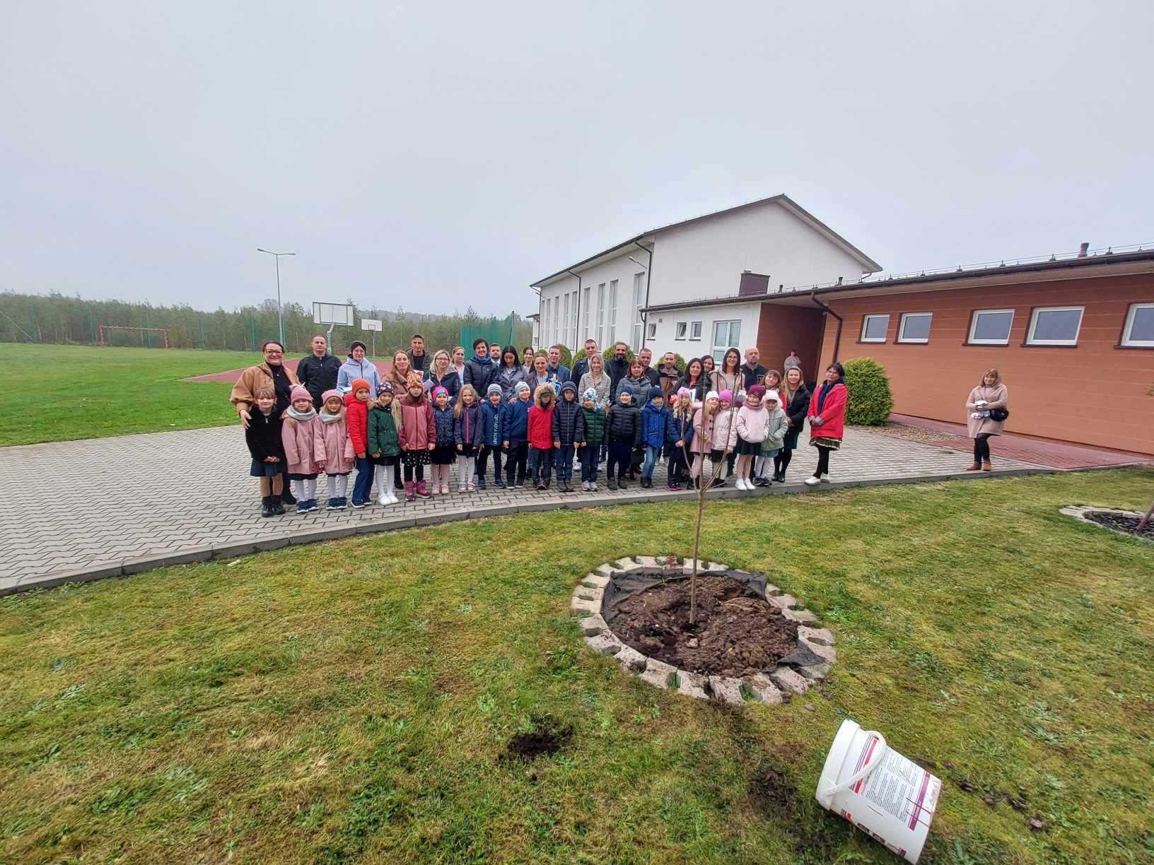 zakopanej pod drzewkiem, które własnoręcznie zasadzili przed szkołą.