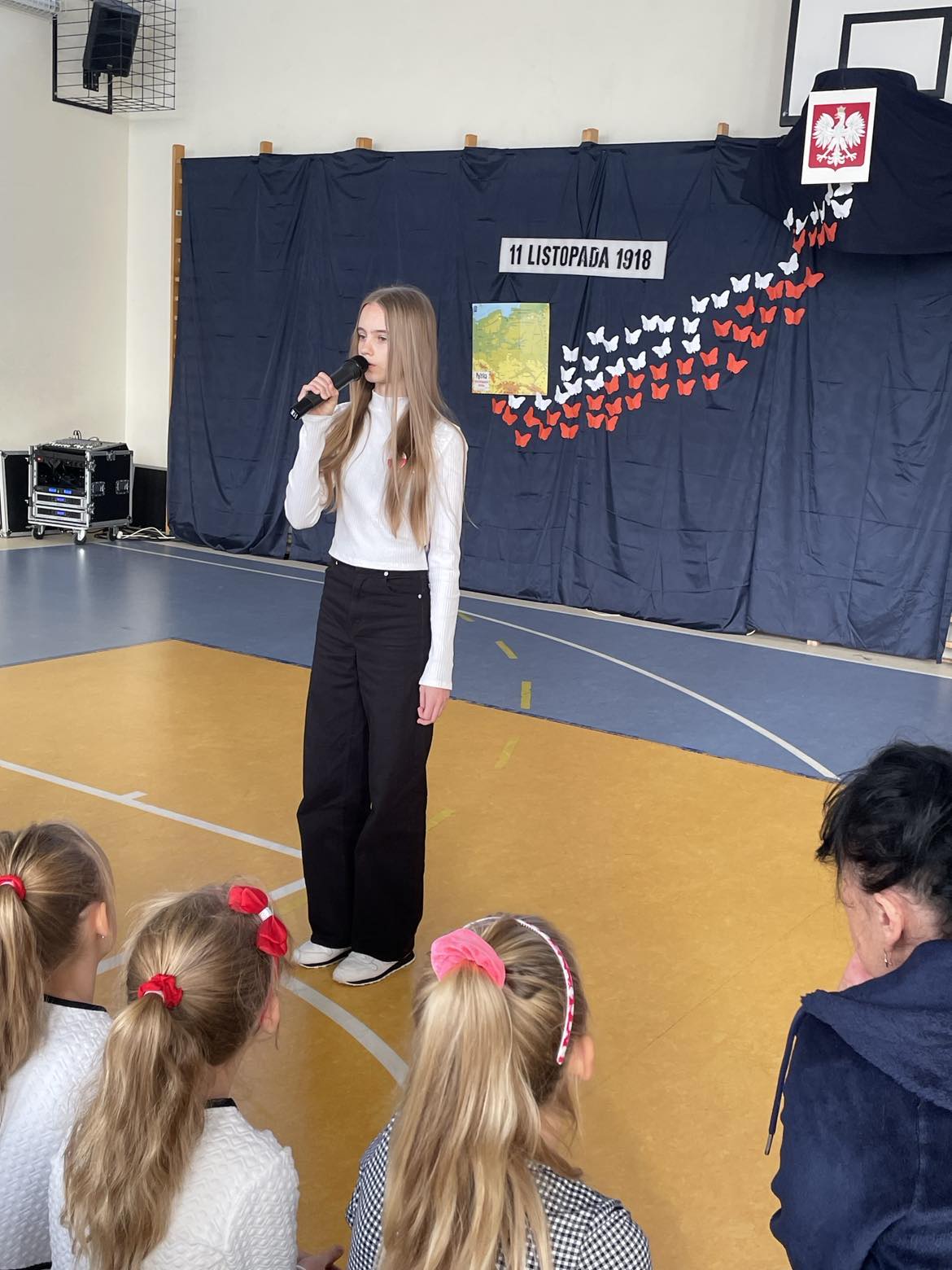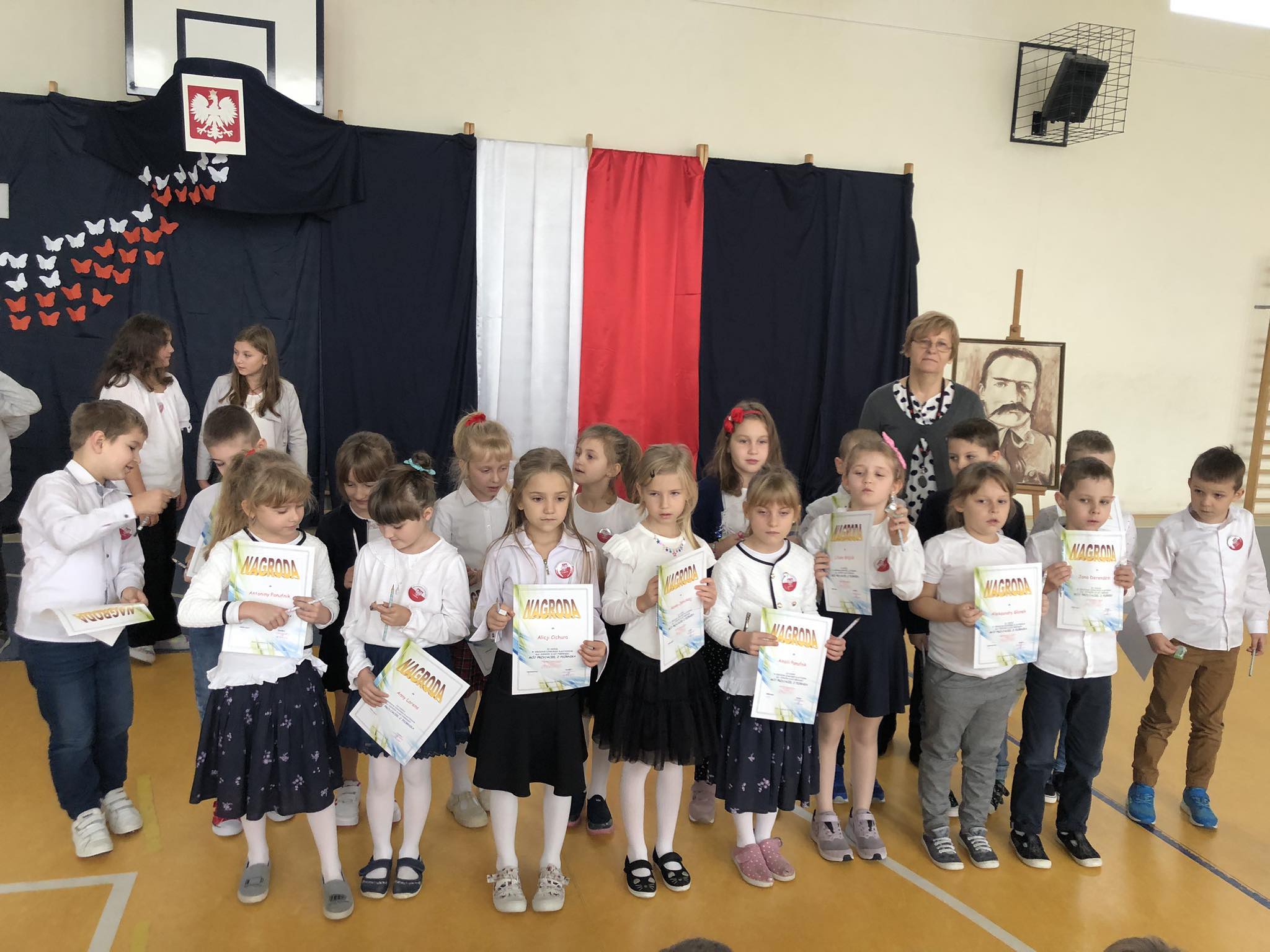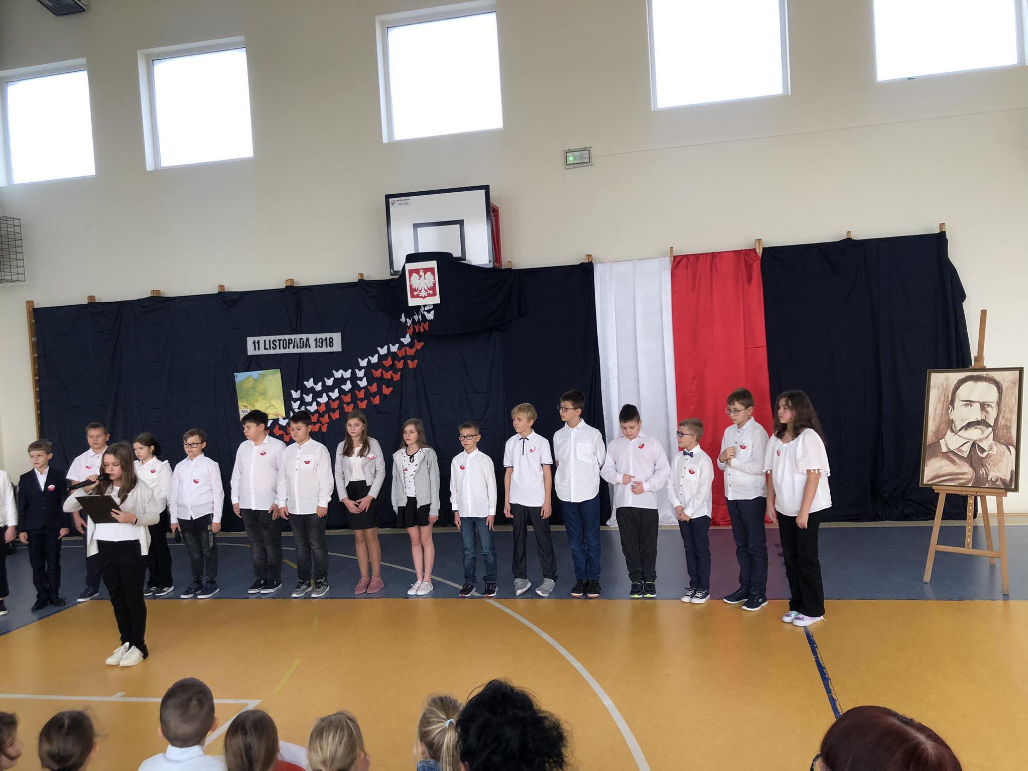 Zwieńczeniem Tygodnia Hymnu był Szkolny Konkurs Recytatorski Poezji Patriotycznej i uroczysty apel w wykonaniu klasy 4, który odbył się 13 listopada. Nad przebiegiem konkursu czuwała p. I. Jędrzejczyk, organizator konkursu. Jury w składzie: p. A. Czechowska, p. A. Kawnik oraz p. K. Krawentek oceniały uczniów w 2 kategoriach wiekowych: uczniowie klas 1-3 oraz klas 5-8. Po konkursie uczniowie wspólnie odśpiewali hymn, a potem klasy 4 zaprezentowała montaż słowno- muzyczny ,,Dla Niepodległej - pamiętamy” pod kierunkiem wychowawcy, p. J. Nowak.