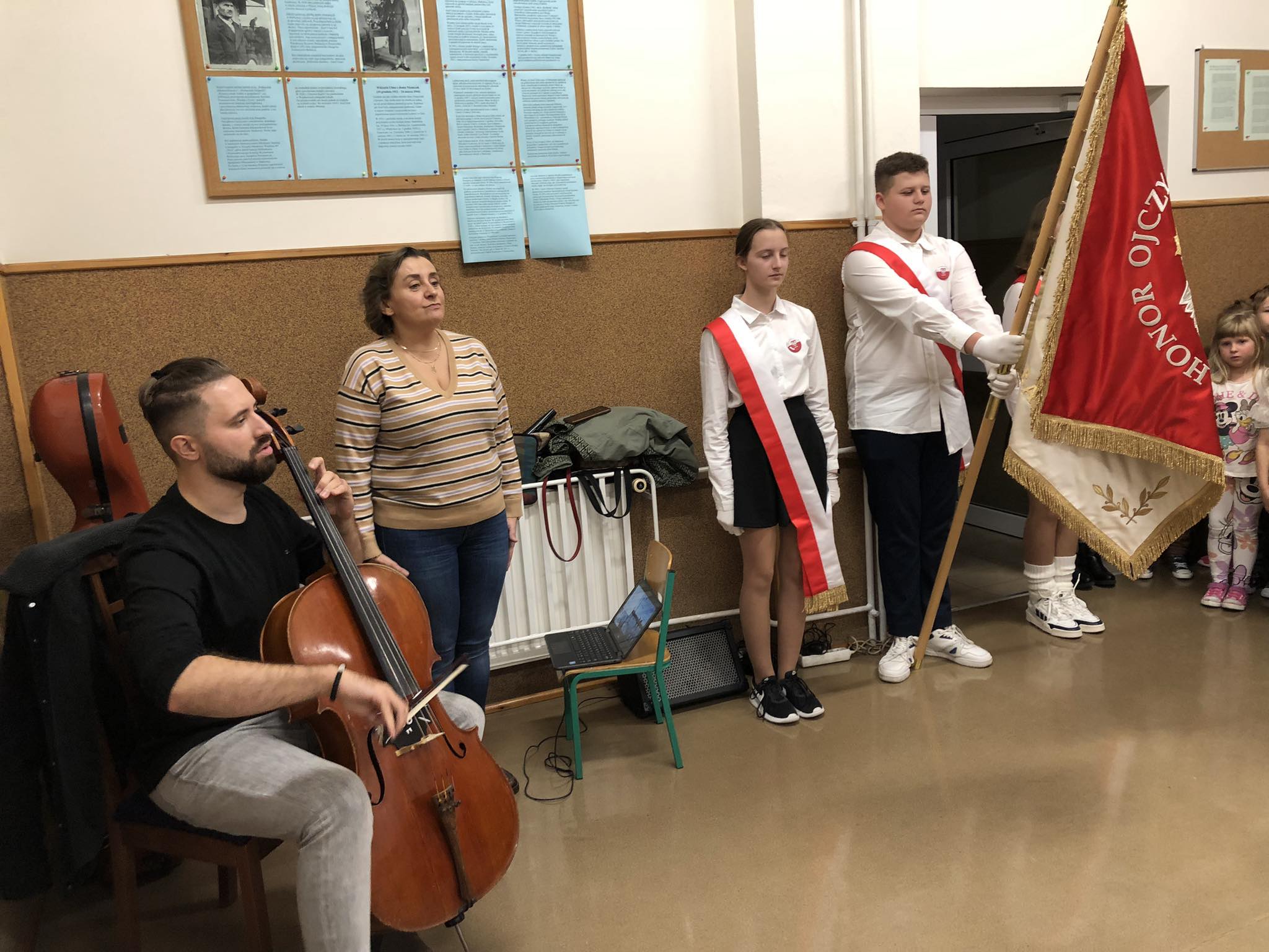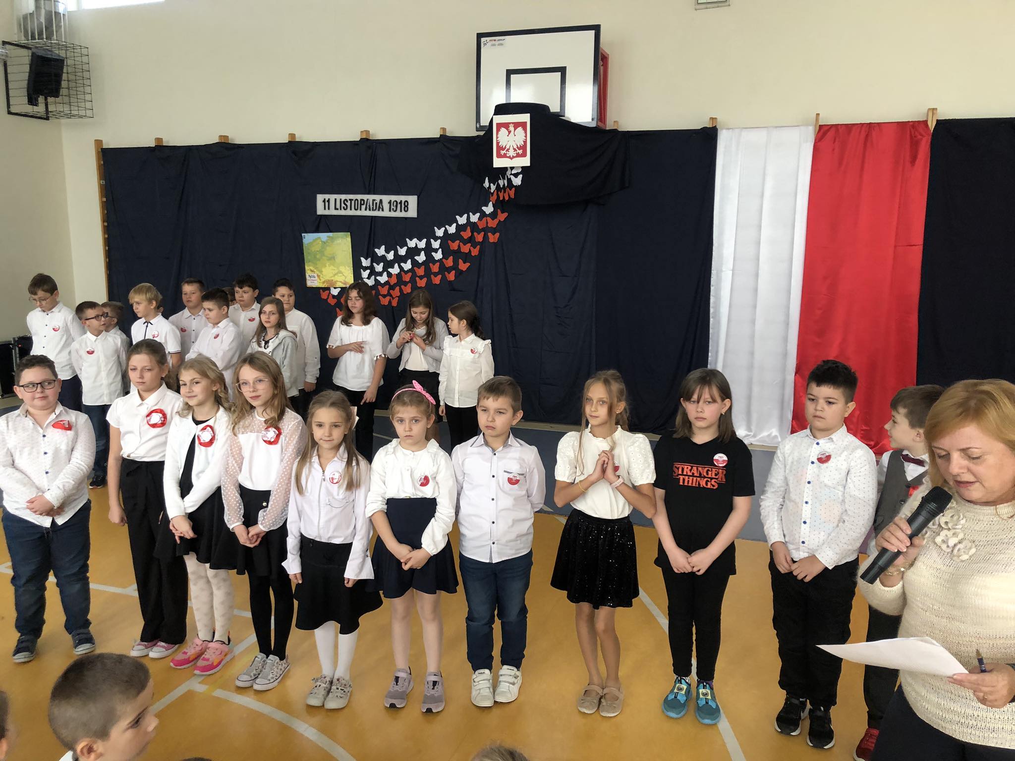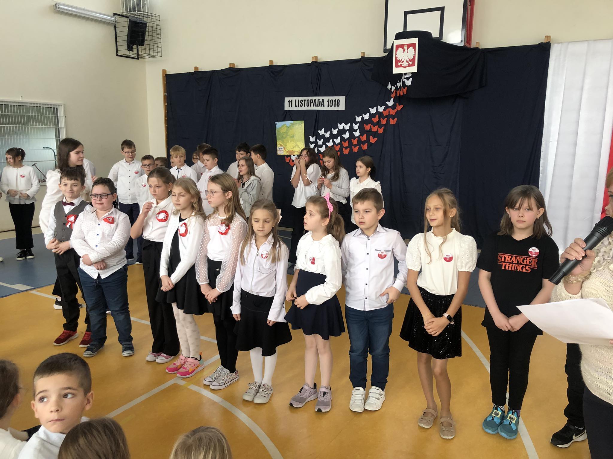Tydzień Hymnu w naszej szkole rozpoczął się 6 listopada a zakończył 13 listopada br. . Uczniowie oddziału przedszkolnego i klas 1-8 wspólnie z nauczycielami codziennie rano, przed rozpoczęciem zajęć, śpiewali hymn „Mazurek Dąbrowskiego”. W piątek – 10 listopada- w ramach ogólnopolskiej akcji „Szkoła do Hymnu” uczniowie i nauczyciele przy akompaniamencie muzyków z Towarzystwa Muzycznego w Łodzi odśpiewali hymn o godz. 11.11 tak jak w innych szkołach w Polsce, które przystąpiły do tej akcji.