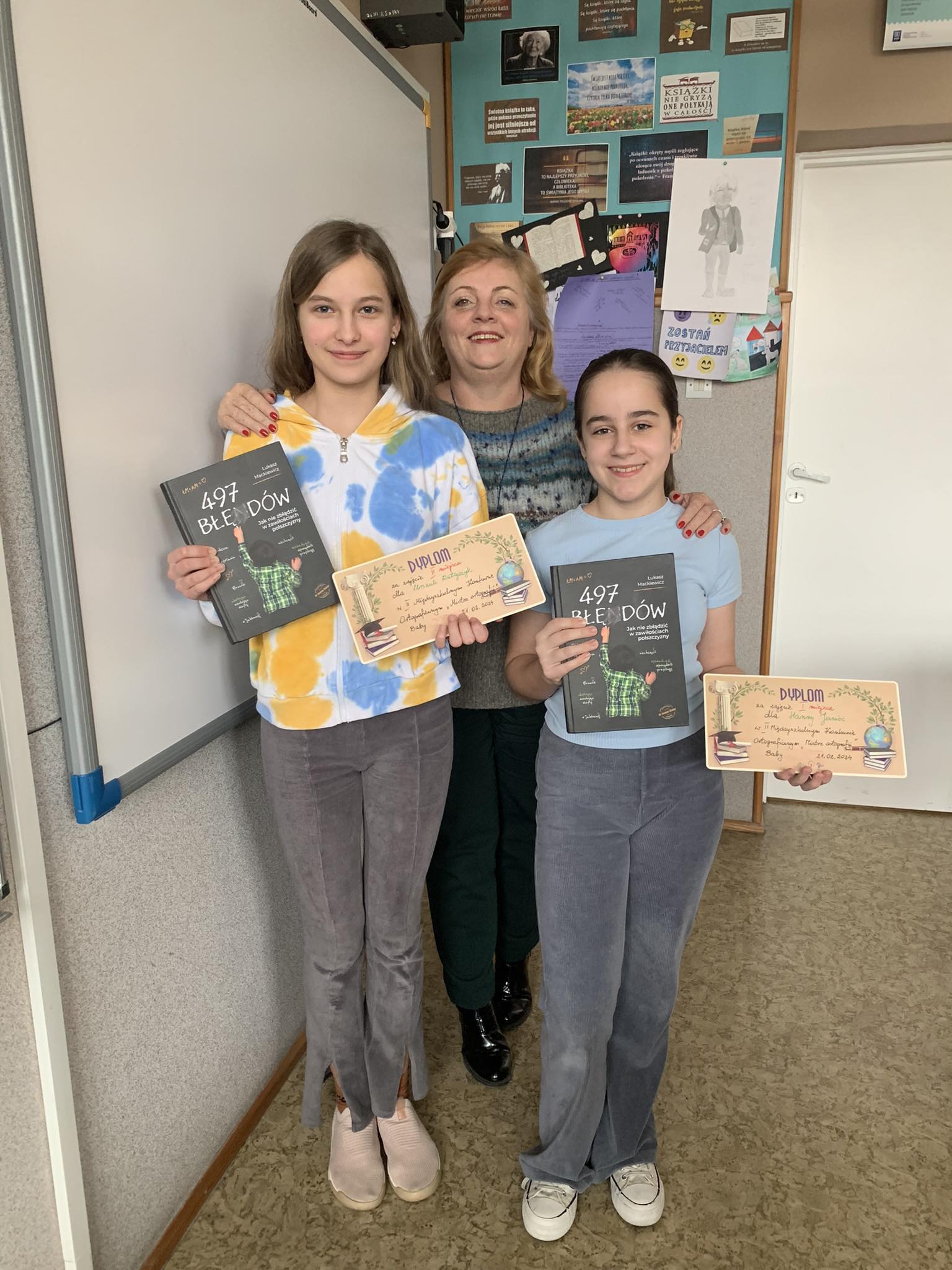 Z okazji Międzynarodowego Dnia Języka Ojczystego 21. lutego 2024 r. w Szkole Podstawowej im. J. Korczaka w Babach został zorganizowany II Międzygminny Konkurs Ortograficzny ,,Mistrz Ortografii". Młodzież klas 7, 8 szkół podstawowych z terenu gmniny Moszczenica oraz gminy Będków zmagała się z niełatwym dyktandem. I miejsce i tytuł ,,Mistrz ortografii'' zdobyła Hanna Janiec, uczennica kl. 7 SP w Babach, II miejsce otrzymała Urszula Ratajczyk, uczennica kl. 7 SP w Babach, III miejsce zdobyli uczniowie: Julia Rytych, uczennica kl. 8 SP w Moszczenicy, Julia Stoś, uczennica kl. 7 SP w Srocku oraz Zuzanna Krawczyk, uczennica kl. 7 SP w Moszczenicy. Nagrodzeni dostali książki Łukasza Mackiewicza pt. ,,497 błędów" objaśniające zawiłości polszczyzny. Wszyscy uczestnicy otrzymali pamiątkowe dyplomy za uczestnictwo, nauczyciele przygotowujący uczniów -pisemne podziękowania. W tym dniu odbyły się również warsztaty integracyjne dla dzieci- uczestników konkursu ortograficznego i plastycznego, które przeprowadził pedagog SP w Babach, Edyta Jończyk. Przygotowano poczęstunek dla gości. Podsumowano wyniki gminnego konkursu plastycznego nt. profilaktyki uzależnień. Pani dyrektor SP w Babach Maria Bylinka wręczyła dyplomy i nagrody oraz pogratulowała zwycięzcom. Konkurs przygotowały nauczycielki: polonistka Agnieszka Czechowska i pedagog szkolny Edyta Jończyk ze Szkoły Podstawowej w Babach.
