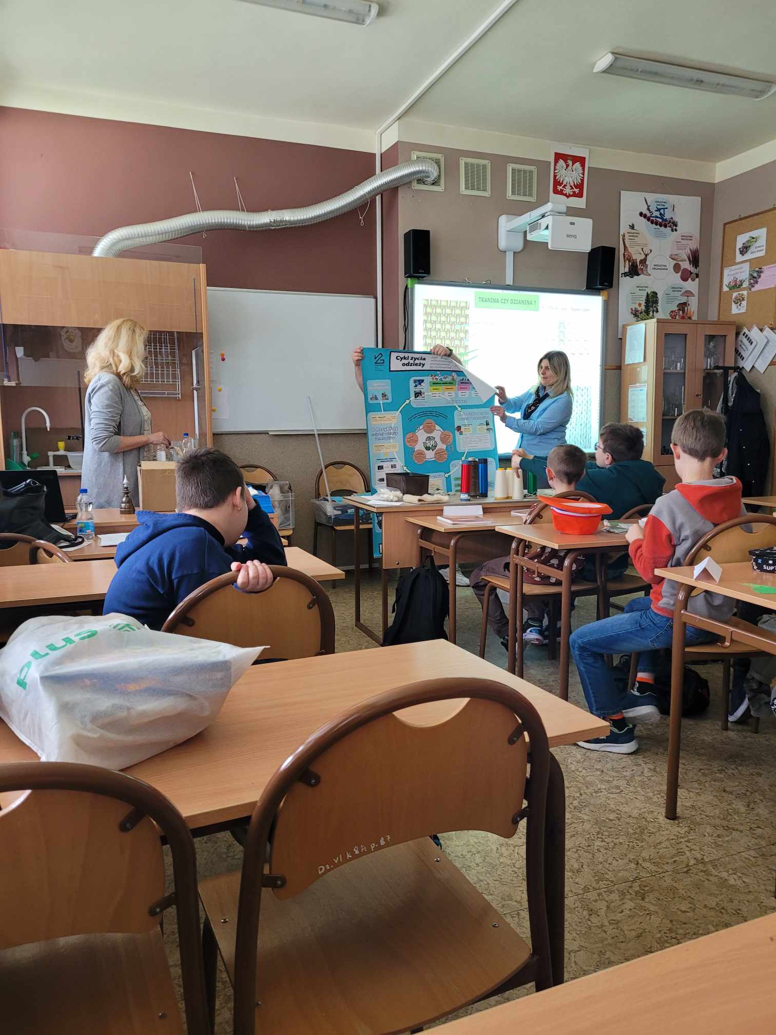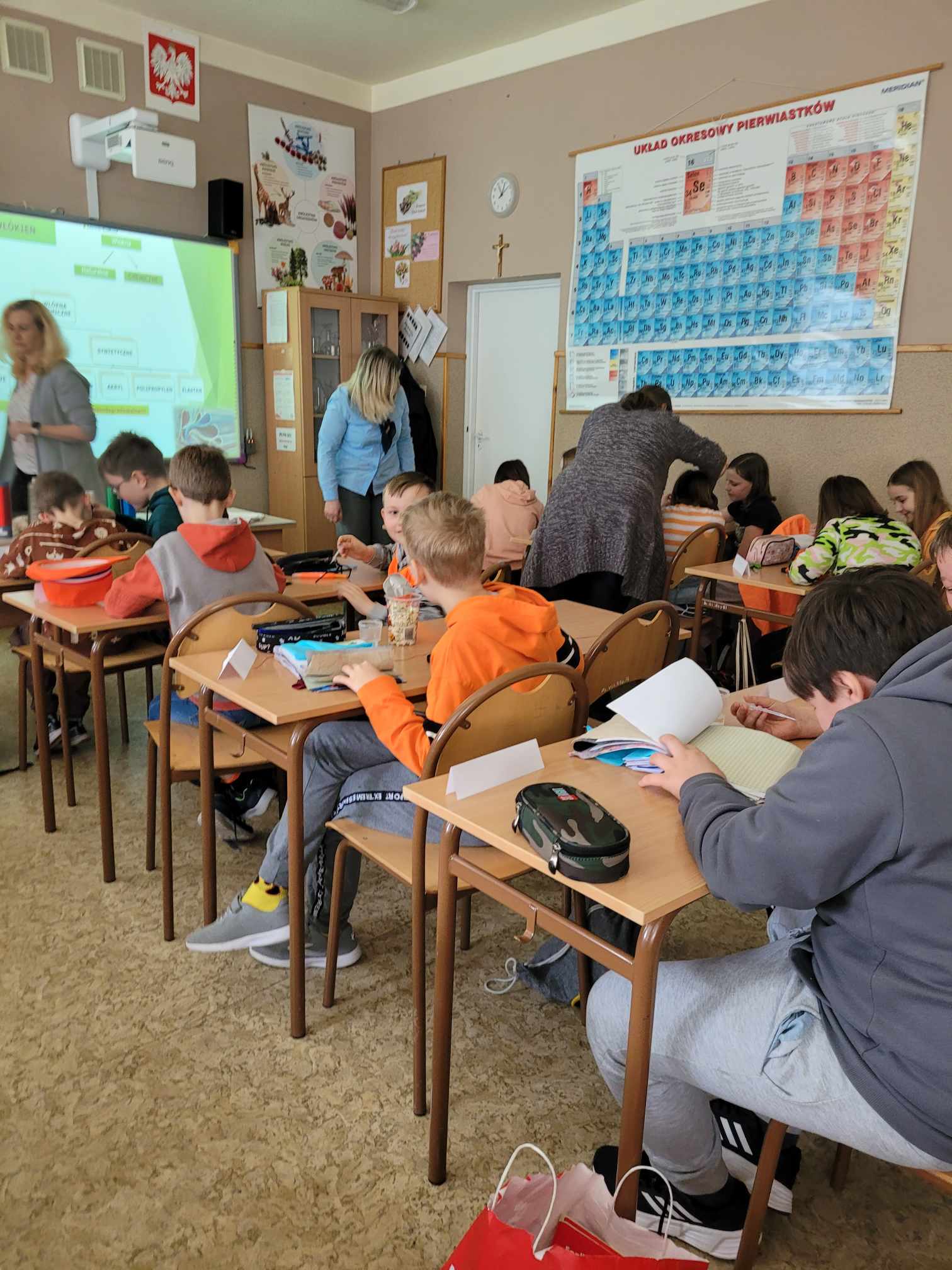 W dniu 21 marca 2024r. klasa IV uczestniczyła w warsztatach pt. „Włókiennicza przygoda” realizowanych w ramach projektu „Popularyzacja wiedzy włókienniczej” projekt Ministerstwa Edukacji i Nauki realizowany przez Łukasiewicz – Łódzki Instytut Technologiczny. Uczniowie zgłębili wiedzę na temat budowy i wykorzystania materiałów. Zapoznali się z procesem obiegu ubrań od produkcji do momentu, kiedy nie są one już używane. Prowadzący uczulili również uczniów na to, aby sprawdzali metki i analizowali składy materiałów ubrań, które kupują. Warsztaty były ciekawe, zaangażowały uczniów i pozostawiły przemyślenia na temat składu naszych ubrań.