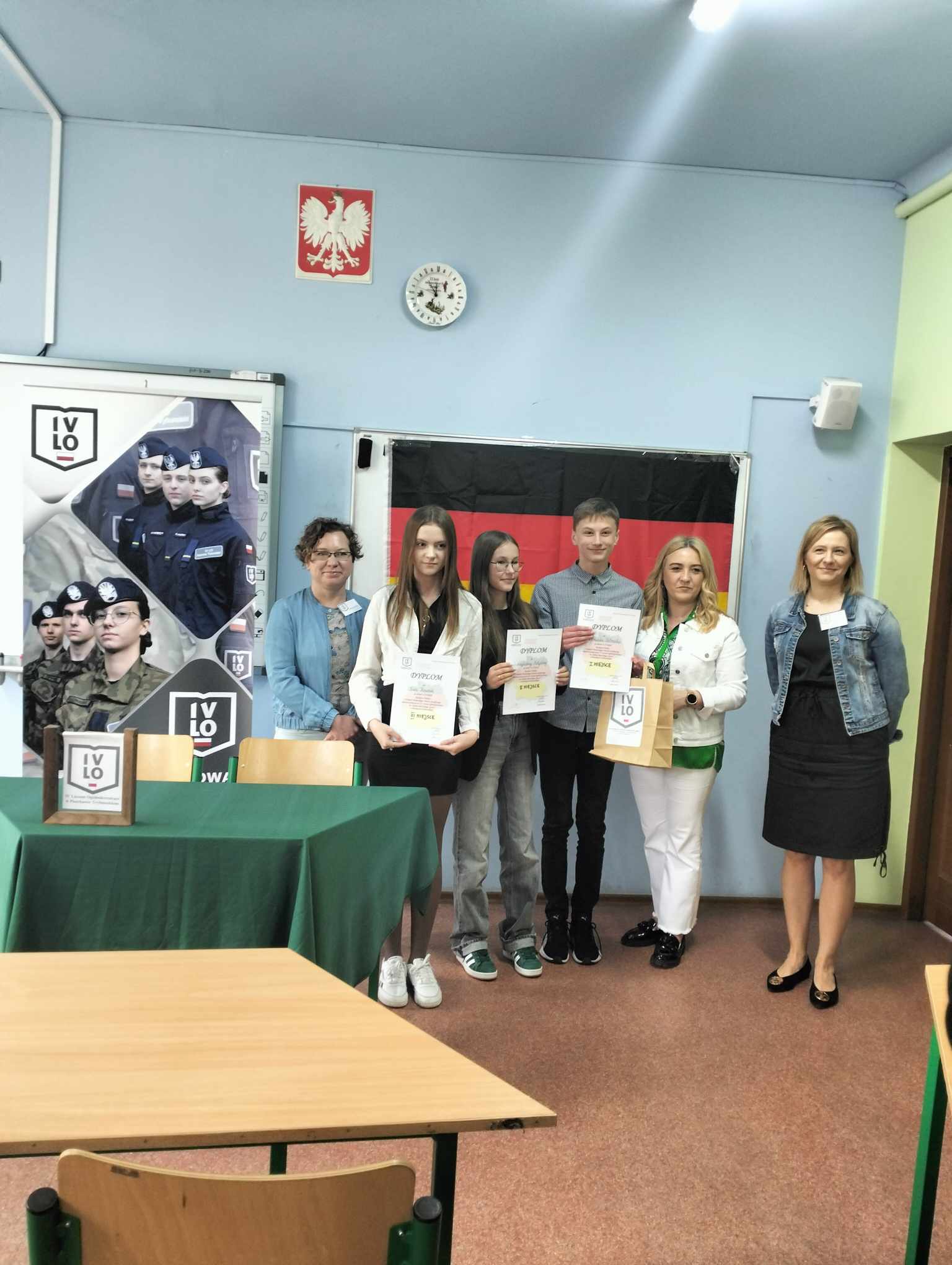 Wszyscy uczniowie, którzy brali udział w konkursie otrzymali odpowiednio oceny celujące i bardzo dobre ( w zależności od wyniku) z j. niemieckiego. Konkurs przeprowadzała pani Barbara Nowak.