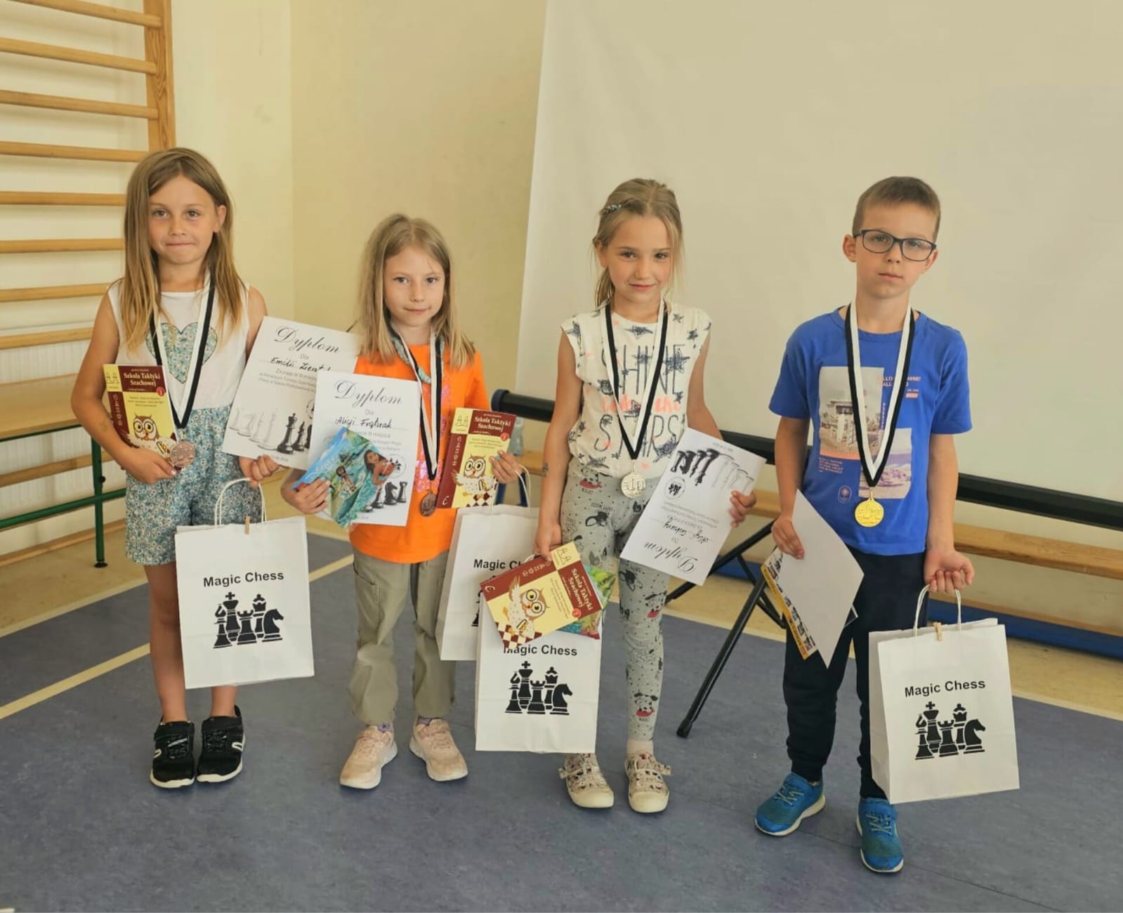 Turniej odbył się w wyśmienitej atmosferze. Widać jak każde dziecko było zaangażowane, więc każde jest zwycięzcą. Dlatego dla wszystkich był upominek. Na podium znaleźli się: złoto zdobył Antoni Derendarz 5 pkt., srebro Alicja Cichura 4,5 pkt., brąz: Alicja Frątczak i Emilia Zientek po 4 pkt.