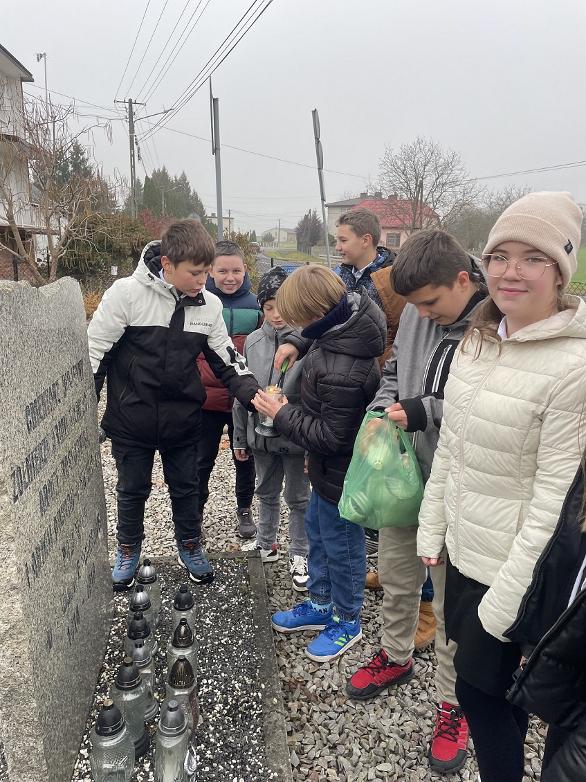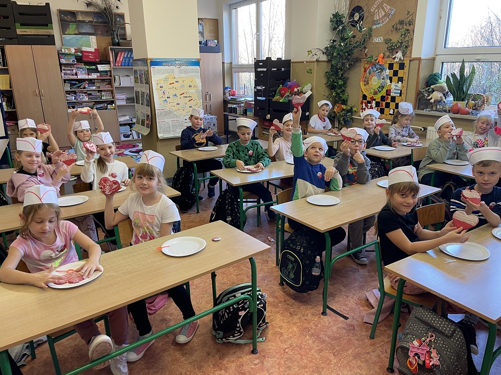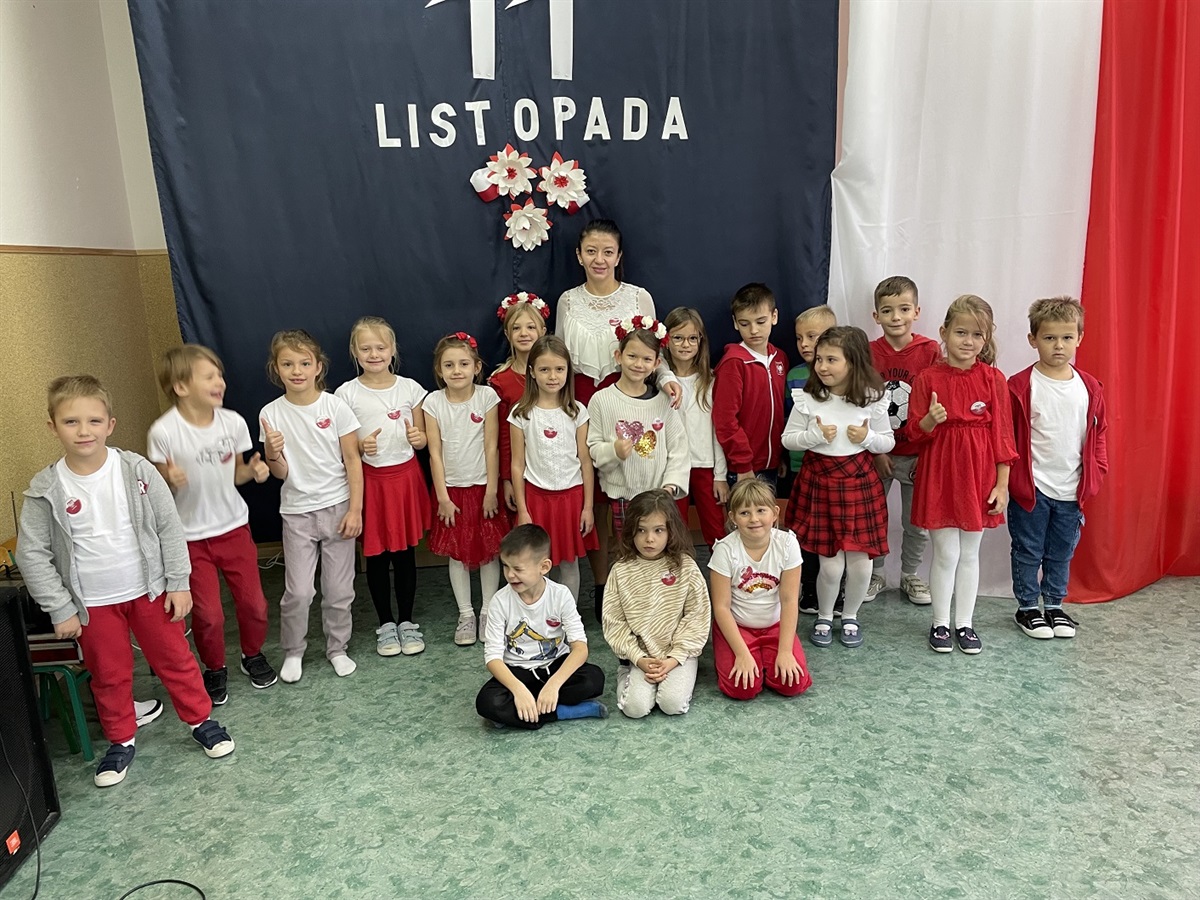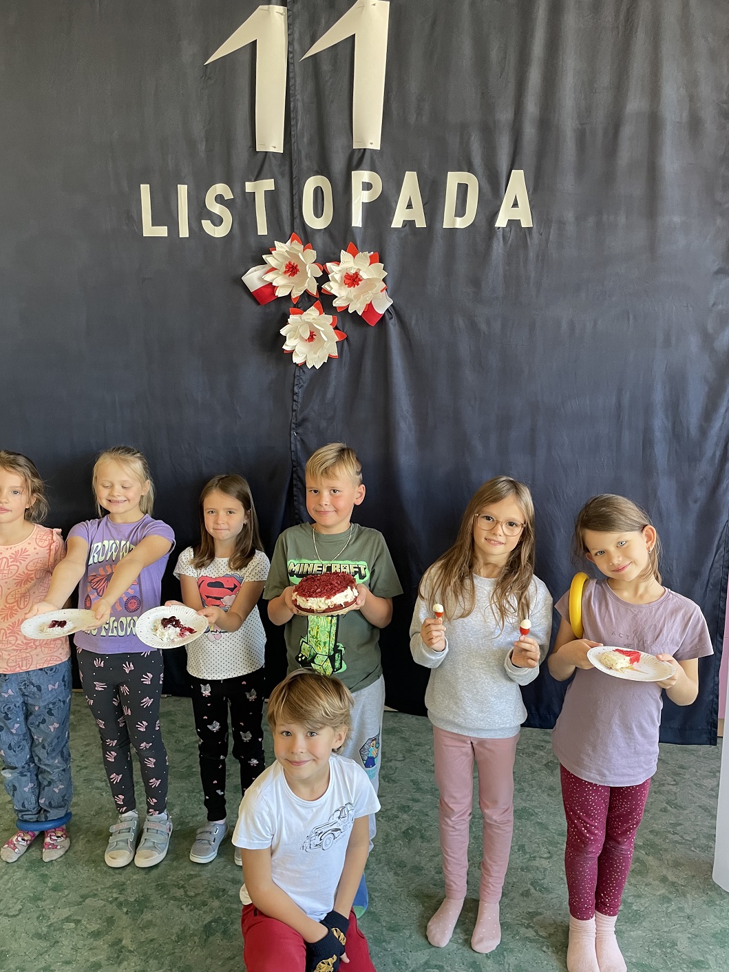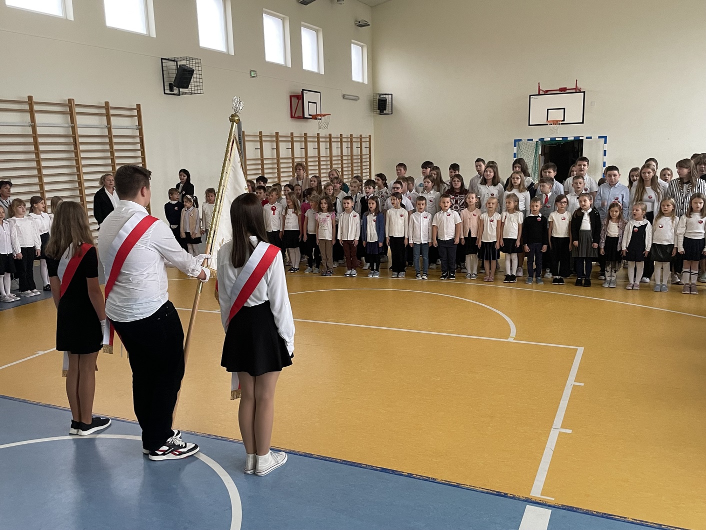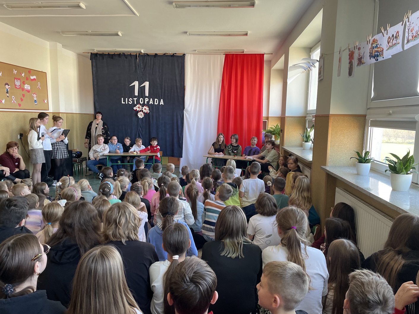 Od wielu lat w naszej szkole odbywa się Tydzień Hymnu z okazji zbliżającego się Święta Niepodległości Polski. W tym roku, z okazji 106 rocznicy odzyskania przez Polskę Niepodległości, Tydzień Hymnu obchodziliśmy w dniach 4-8 listopada 2024 roku. Już 4 listopada uczniowie wspólnie z wychowawcami przygotowali „Drzwi do Niepodległości”, które ozdabiały ich klasę. Pomysły i kreatywność uczniów są nie do ocenienia. We wtorek, 5 listopada, cała społeczność szkolna wzięła udział w akcji: „Zdrowo to też biało-czerwono” przygotowując potrawy, kanapki, desery w kolorze biało-czerwonym. Oczywiście w tym dniu przyszedł też czas na wspólną degustację tych potraw. 6 listopada, w środę, uczniowie i nauczyciele wzięli udział w Familiadzie Niepodległościowej, która była przeplatana wspólnym śpiewaniem pieśni patriotycznych począwszy od oddziału przedszkolnego a kończąc na klasie 8. Warto dodać, że żadna z pieśni się nie powtórzyła, co zasługuje na szczególną pochwałę. Wśród pieśni nie zabrakło: „Roty”, „To jest Polska” czy „Pierwszej Brygady”. 7 listopada przyszedł czas na akcję : „Kolorowo to tez biało-czerwono” , dzień, w którym uczniowie ubrali się na biało- czerwono. Oprócz tego, w czwartek, uczniowie klas starszych dumnie reprezentowali naszą szkołę na IX Gminnym Konkursie Recytatorskim Poezji Patriotycznej w Jarostach. Maja Szymańska z kl. 6 i Izabela Kawnik z kl. 7 otrzymały Wyróżnienia i nagrody książkowe. Dzień 8 listopada był dniem , w którym szkoła wzięła udział w ogólnopolskiej akcji „Szkoła do Hymnu” śpiewając „Mazurka Dąbrowskiego” o godz. 11.11, tak jak większość uczniów w całej Polsce. Po odśpiewaniu hymnu uczniowie klasy 6 udali się na cmentarz żołnierski w Kiełczówce, aby tam zapalić znicze i upamiętnić tych, którzy walczyli w okresie I wojny światowej, jednak nie doczekali wielkiego zwycięstwa. Warto wspomnieć, że podczas Tygodnia Hymnu codziennie był śpiewany hymn państwowy i odbywała się zbiórka zniczy, które potem zapalono na cmentarzu żołnierskim. Dziękujemy wszystkim za ogromne zaangażowanie i wspólne świętowanie jakże ważnego dla nas święta – Święta Niepodległości. Dziękujemy uczniom, wychowawcom, pracownikom szkoły i rodzicom za zaangażowanie. Nad organizacją i przebiegiem Tygodnia Hymnu czuwała nauczycielka historii- p. Iwona Jędrzejczyk.