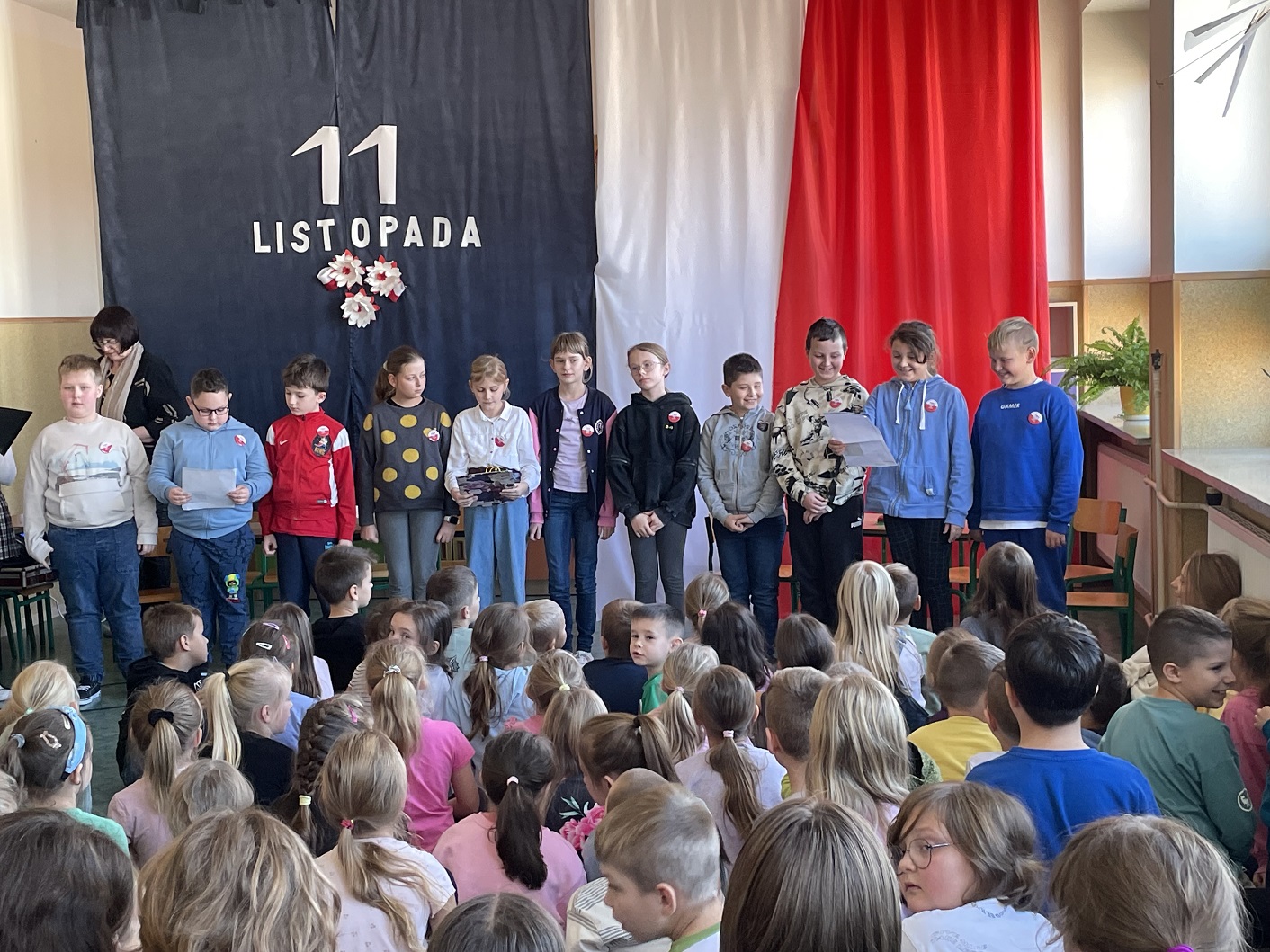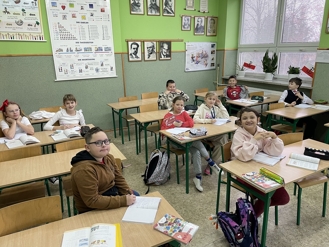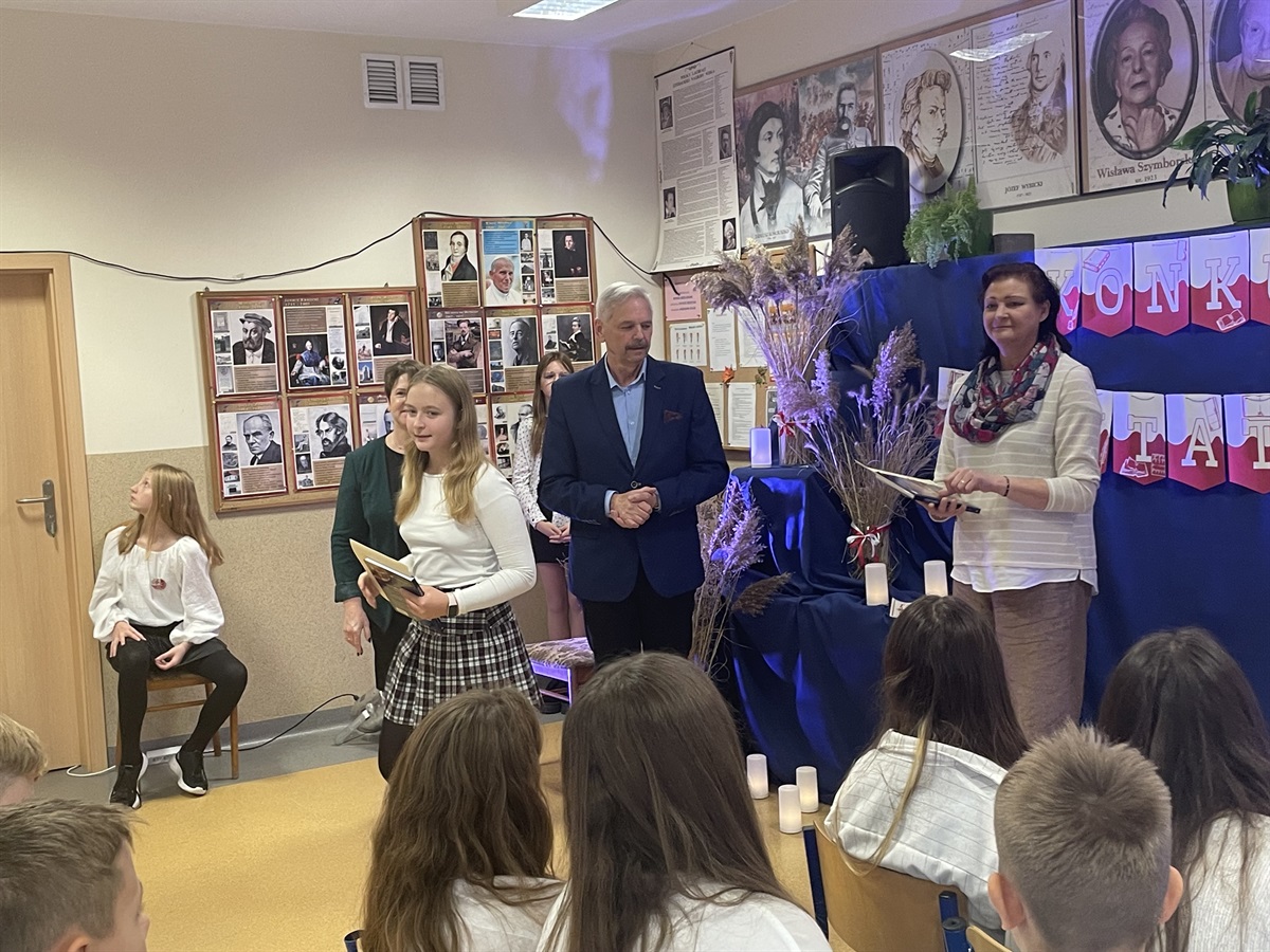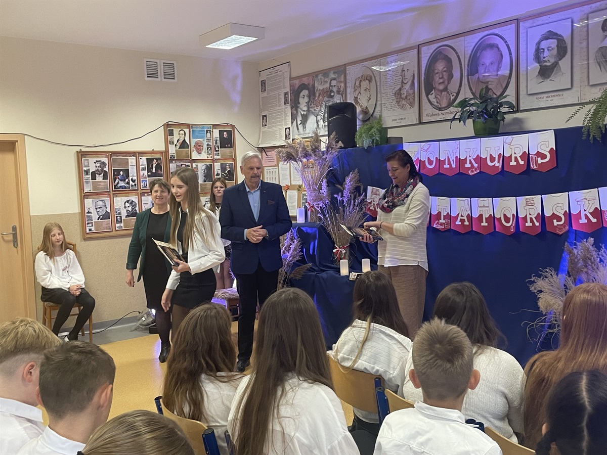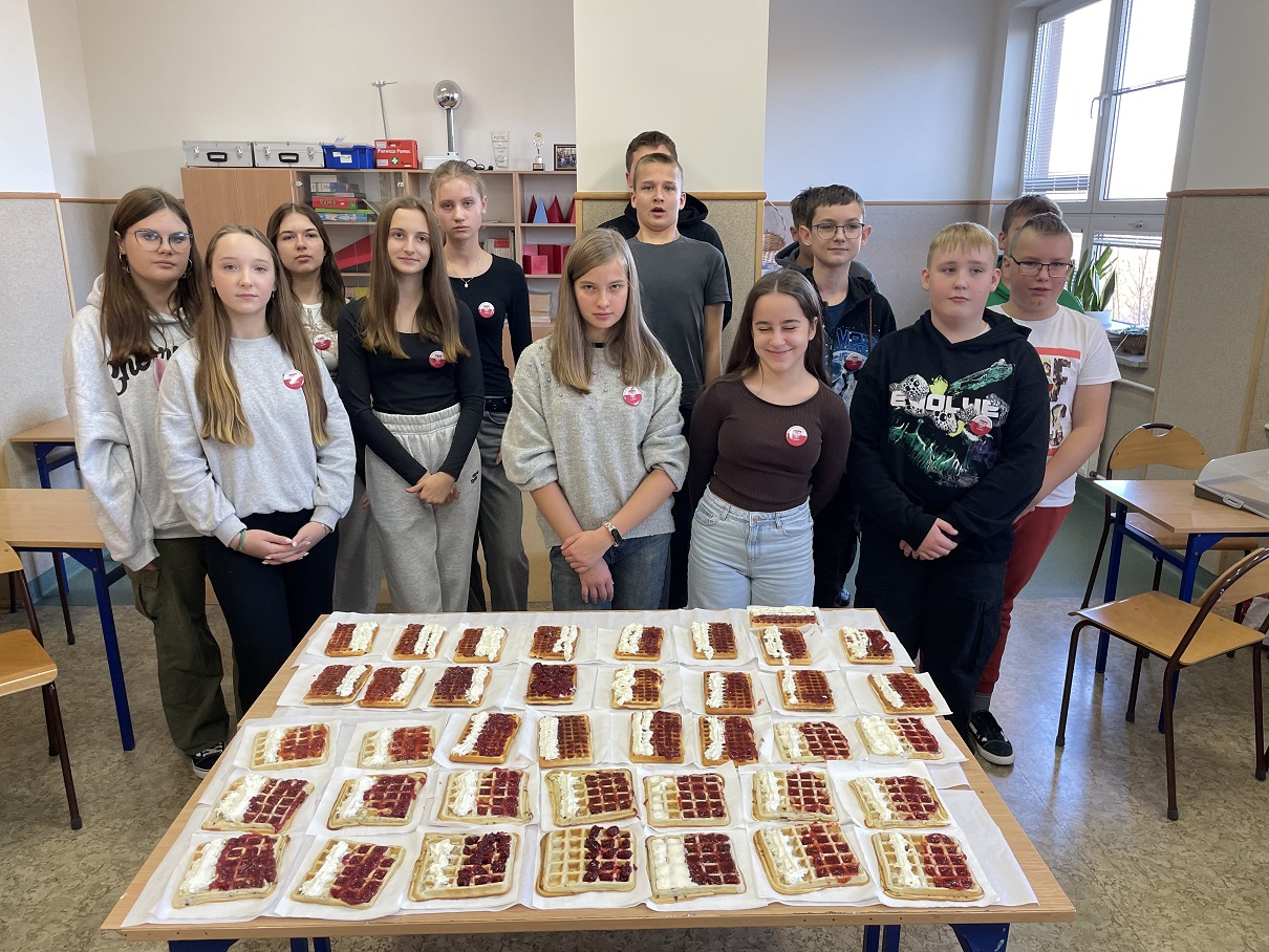 Od wielu lat w naszej szkole odbywa się Tydzień Hymnu z okazji zbliżającego się Święta Niepodległości Polski. W tym roku, z okazji 106 rocznicy odzyskania przez Polskę Niepodległości, Tydzień Hymnu obchodziliśmy w dniach 4-8 listopada 2024 roku. Już 4 listopada uczniowie wspólnie z wychowawcami przygotowali „Drzwi do Niepodległości”, które ozdabiały ich klasę. Pomysły i kreatywność uczniów są nie do ocenienia. We wtorek, 5 listopada, cała społeczność szkolna wzięła udział w akcji: „Zdrowo to też biało-czerwono” przygotowując potrawy, kanapki, desery w kolorze biało-czerwonym. Oczywiście w tym dniu przyszedł też czas na wspólną degustację tych potraw. 6 listopada, w środę, uczniowie i nauczyciele wzięli udział w Familiadzie Niepodległościowej, która była przeplatana wspólnym śpiewaniem pieśni patriotycznych począwszy od oddziału przedszkolnego a kończąc na klasie 8. Warto dodać, że żadna z pieśni się nie powtórzyła, co zasługuje na szczególną pochwałę. Wśród pieśni nie zabrakło: „Roty”, „To jest Polska” czy „Pierwszej Brygady”. 7 listopada przyszedł czas na akcję : „Kolorowo to tez biało-czerwono” , dzień, w którym uczniowie ubrali się na biało- czerwono. Oprócz tego, w czwartek, uczniowie klas starszych dumnie reprezentowali naszą szkołę na IX Gminnym Konkursie Recytatorskim Poezji Patriotycznej w Jarostach. Maja Szymańska z kl. 6 i Izabela Kawnik z kl. 7 otrzymały Wyróżnienia i nagrody książkowe. Dzień 8 listopada był dniem , w którym szkoła wzięła udział w ogólnopolskiej akcji „Szkoła do Hymnu” śpiewając „Mazurka Dąbrowskiego” o godz. 11.11, tak jak większość uczniów w całej Polsce. Po odśpiewaniu hymnu uczniowie klasy 6 udali się na cmentarz żołnierski w Kiełczówce, aby tam zapalić znicze i upamiętnić tych, którzy walczyli w okresie I wojny światowej, jednak nie doczekali wielkiego zwycięstwa. Warto wspomnieć, że podczas Tygodnia Hymnu codziennie był śpiewany hymn państwowy i odbywała się zbiórka zniczy, które potem zapalono na cmentarzu żołnierskim. Dziękujemy wszystkim za ogromne zaangażowanie i wspólne świętowanie jakże ważnego dla nas święta – Święta Niepodległości. Dziękujemy uczniom, wychowawcom, pracownikom szkoły i rodzicom za zaangażowanie. Nad organizacją i przebiegiem Tygodnia Hymnu czuwała nauczycielka historii- p. Iwona Jędrzejczyk.