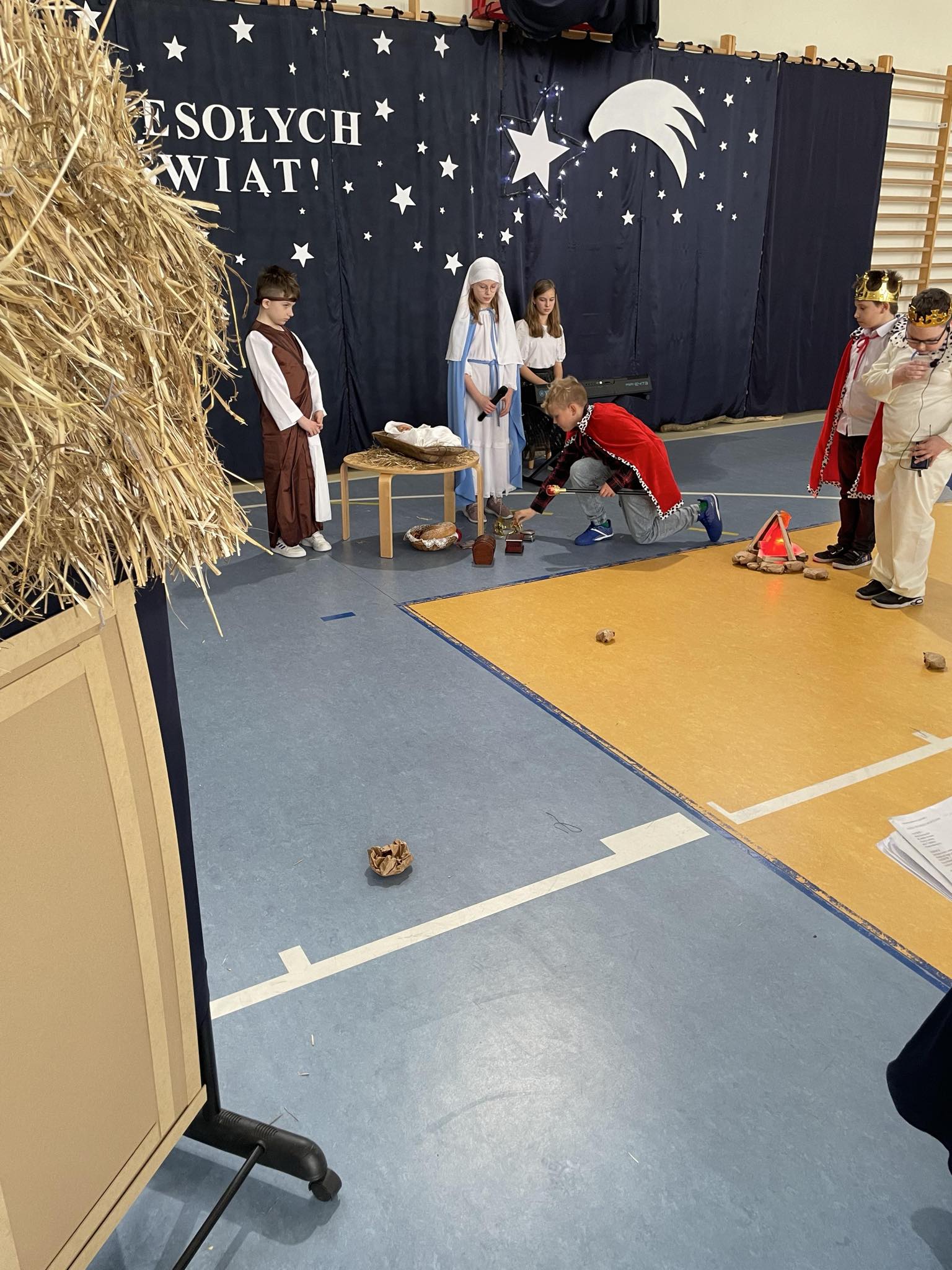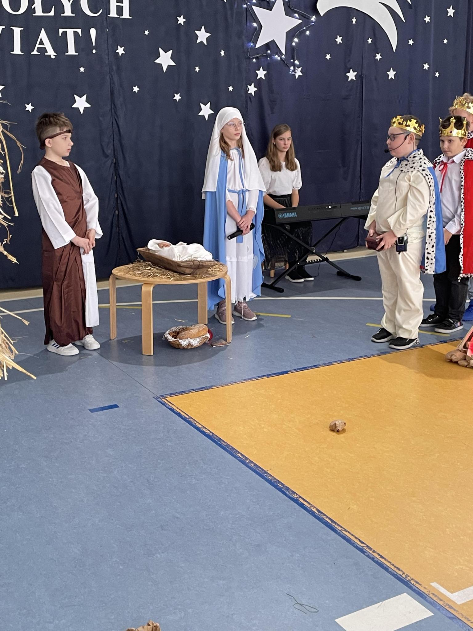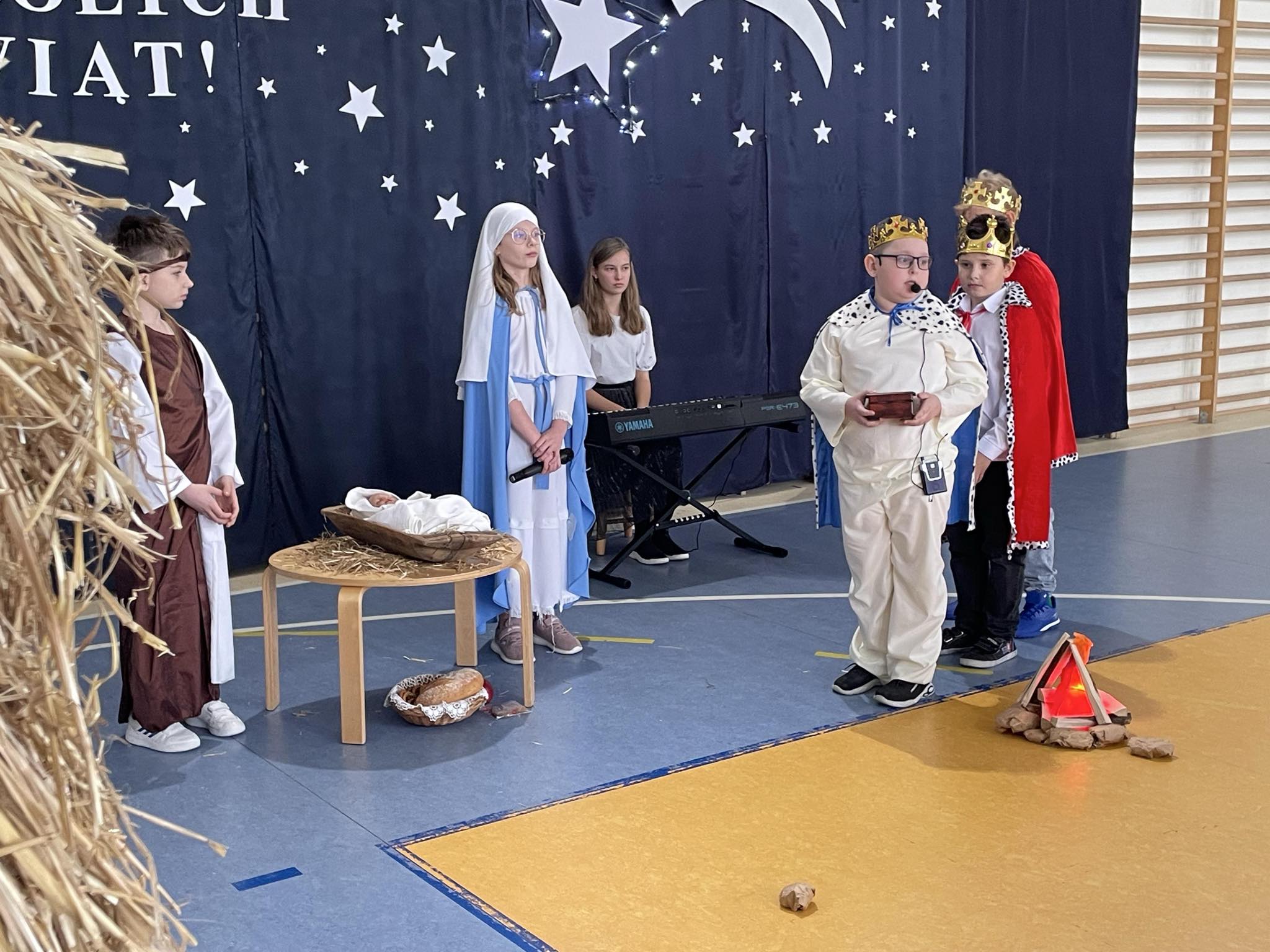 W dniu 20 grudnia 2024 r. w naszej szkole odbyły się Jasełka. Pani dyrektor Katarzyna Jędrusińska przekazała dzieciom i ich rodzinom życzenia świąteczne. Na temat wagi Świąt Bożego Narodzenia wypowiedział się proboszcz Parafii pod wezwaniem św. Maksymiliana Kolbego w Babach ksiądz Krzysztof Żernicki. Następnie uczniowie, nauczyciele, pracownicy obsługi i zgromadzeni goście (rodzice, dziadkowie występujących dzieci) obejrzeli przedstawienie jasełkowe w wykonaniu uczniów klasy czwartej, w którym dzieci wcieliły się w postacie biblijne i nie tylko. Warto zauważyć wkład rodziców, dziadków w przygotowanie kreacji uczniowskich, gdyż np. suknia Maryi i odzienie św. Józefa zostały uszyte na tę okoliczność. Występ umilił śpiew uczniów klasy czwartej i gra na klawiszach uczennicy klasy ósmej Urszuli Ratajczyk. Część artystyczną przygotowała polonistka Agnieszka Czechowska, dekoracje - kierownik świetlicy Karolina Krawentek z pomocą Elżbiety Królikiewicz, oprawę muzyczną - Maria Bylinka. Po obejrzeniu przedstawienia widzowie mogli wysłuchać kolęd wykonanych przez uczniów klasy pierwszej i drugiej pod kierunkiem nauczycieli: Angeliki Kawnik i Marty Rogalskiej. W piątek 20 grudnia uczniowie klasy czwartej zaprezentowali przedstawienie jasełkowe z okazji Świąt Bożego Narodzenia.