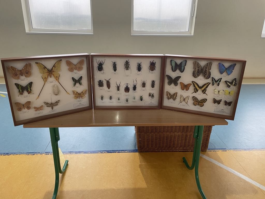 Podziwiano również kolekcję owadów w gablotach, m.in. piękne