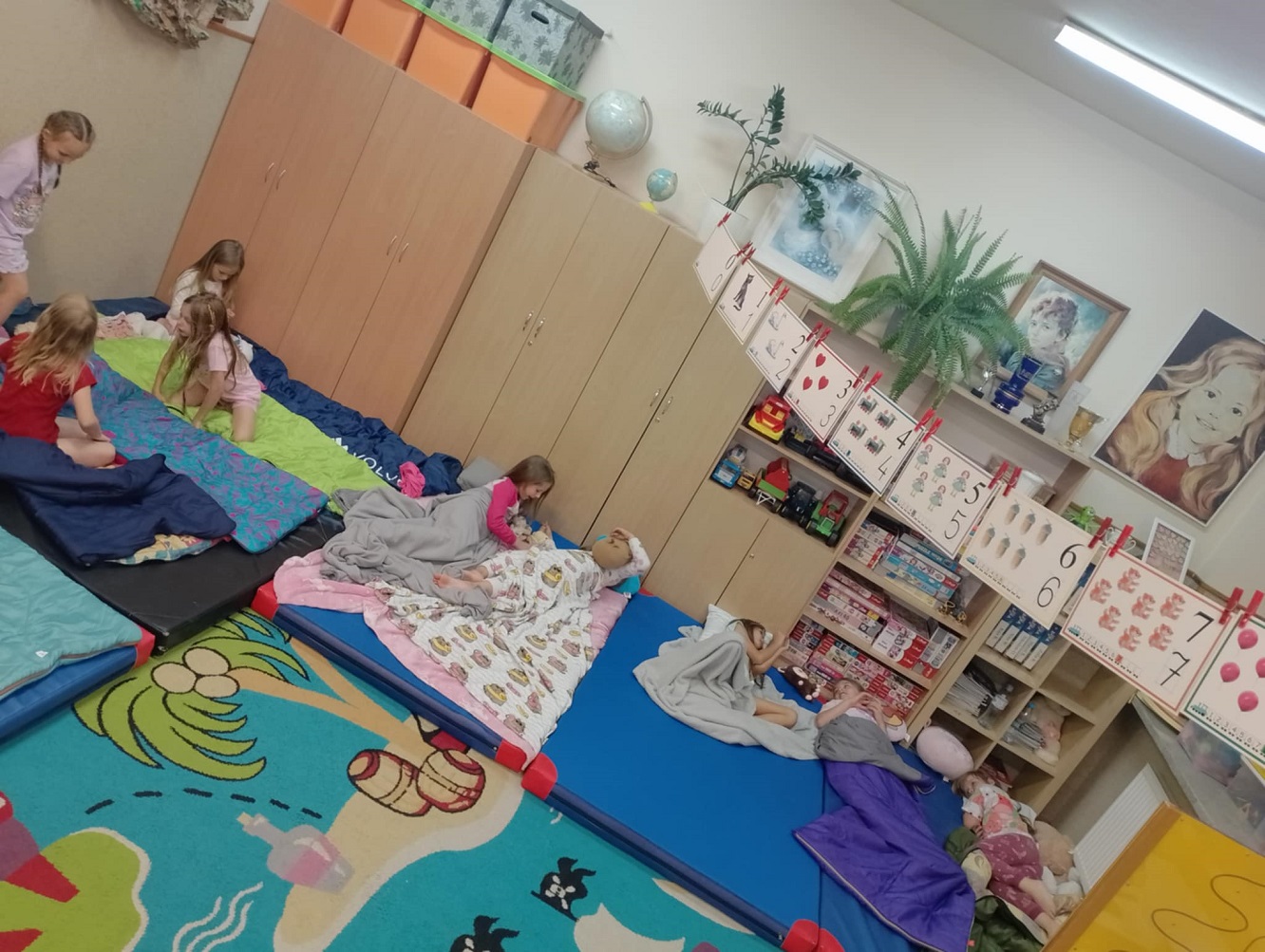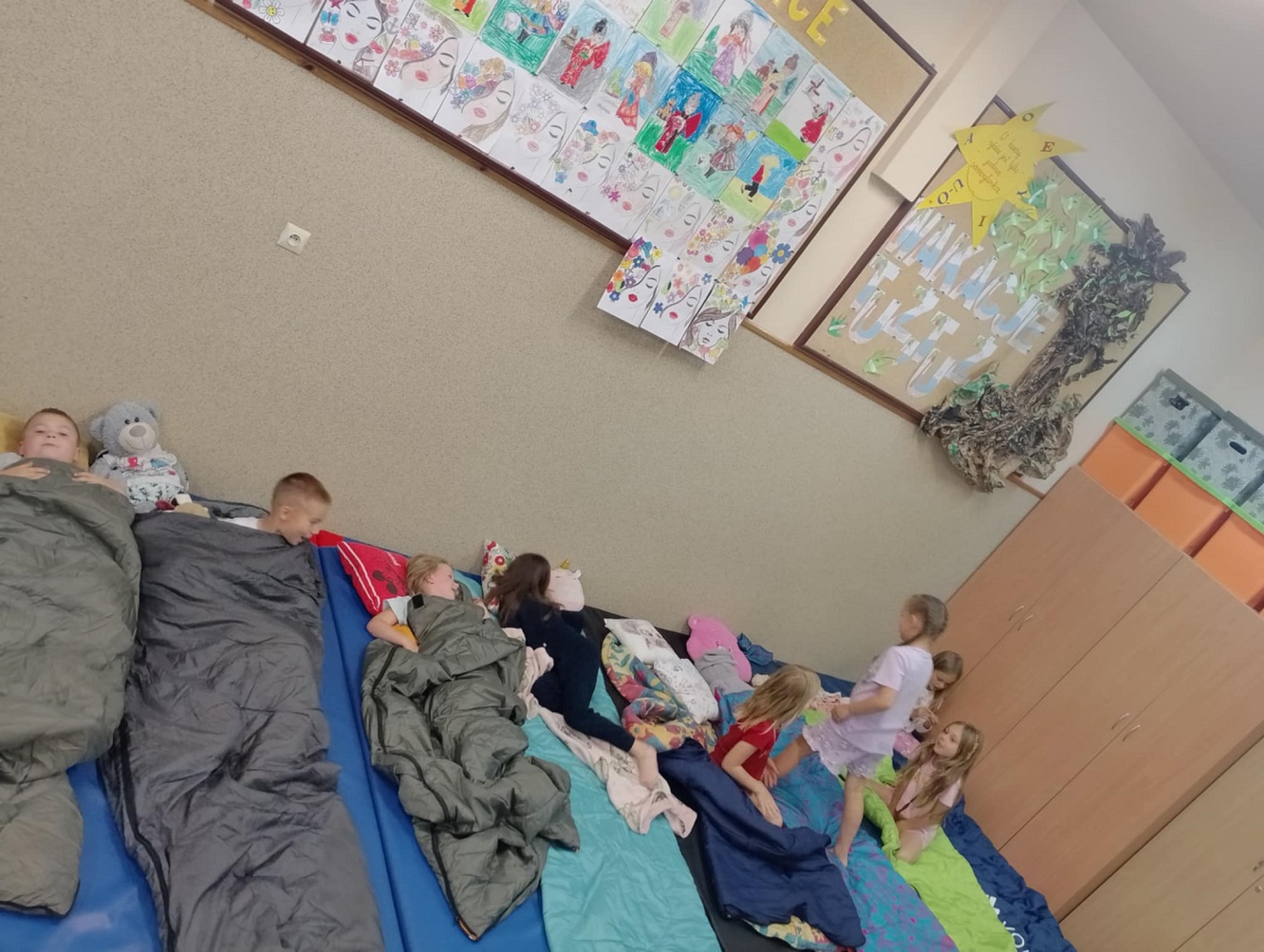 Dzieci z oddziału przedszkolnego spędziły noc w szkolnych murach, pełną śmiechu, zabaw i wspólnego spędzania czasu. Były podchody, gry planszowe, seans filmowy, wspólna kolacja i rozmowy do późna. Magiczna atmosfera i integracja sprawiły, że wszyscy zapamiętają tę noc na długo!