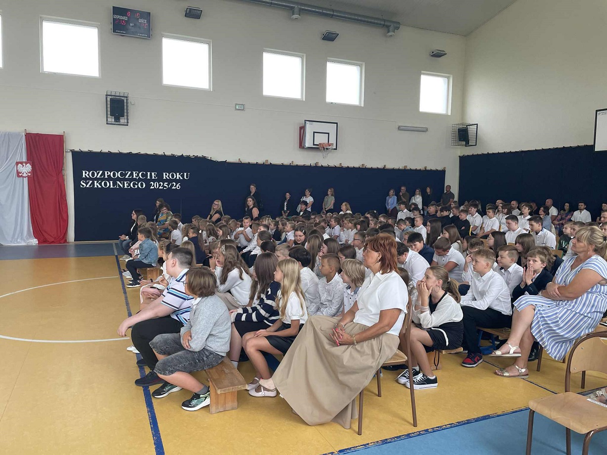 W poniedziałek 01.09.2025r odbyło się uroczyste rozpoczęcie roku szkolnego 2025/2026. Pani dyrektor Katarzyna Jędrusińska przywitała dzieciaki, rodziców, zaproszonych gości i pracowników szkoły. Odśpiewany został hymn szkoły. Po uroczystym rozpoczęciu, wszyscy uczniowie rozeszli się do swoich klas z wychowawcami.