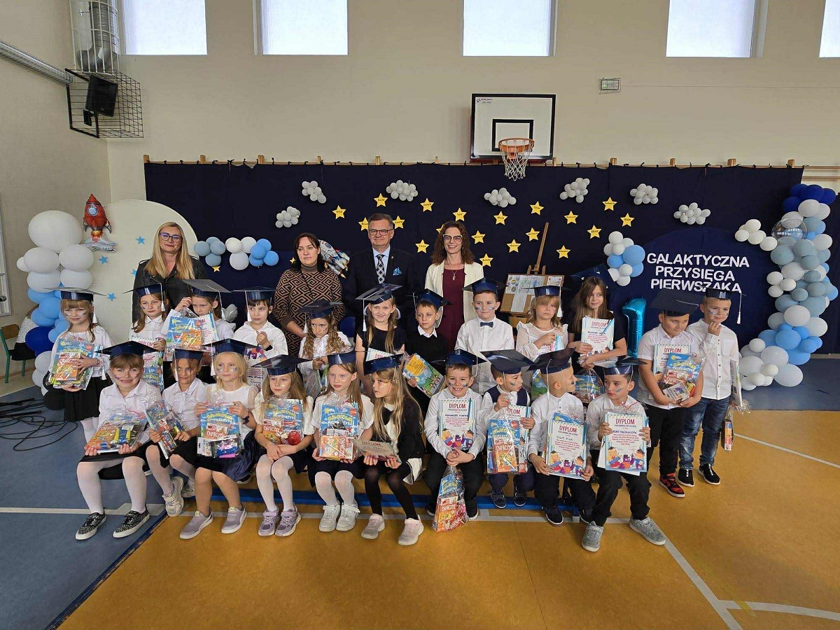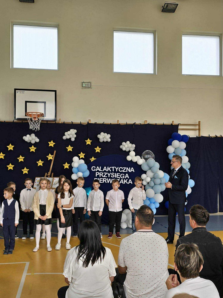 Dzisiaj pierwszoklasiści oficjalnie dołączyli do braci uczniowskiej. W uroczystości wzięli udział rodzice, pani dyrektor Katarzyna Jędrusińska oraz Wójt Gminy Moszczenica Dariusz Magacz. Dzieci zaprezentowały swoje talenty, a po ślubowaniu otrzymały swoje pierwsze legitymacje, prezenty od Rady Rodziców i Wójta Gminy pana Dariusza Magacza.Był to dzień pełen radości, emocji i uśmiechów – pierwszaki mogły poczuć się prawdziwymi członkami szkolnej społeczności!