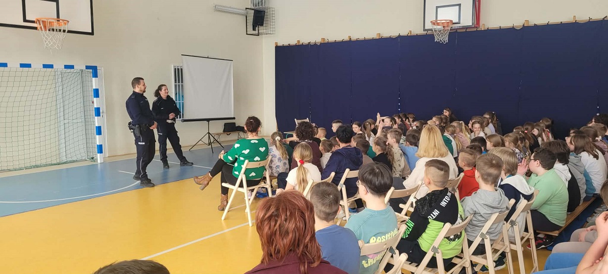 W naszej szkole odbyło się wyjątkowe spotkanie z przedstawicielami Policja, w którym uczestniczyli wszyscy uczniowie – od zerówki aż po klasy 1–8. Spotkanie miało formę pogadanki edukacyjnej poświęconej bezpieczeństwu dzieci i młodzieży.