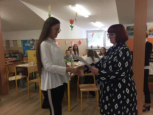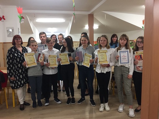 trudnym dyktandem, pt. ,,Wyimki z diariusza wojażu - marzenia i mrzonki". W trakcie sprawdzania dyktand młodzież wraz z opiekunami została zaproszona na poczęstunek, miała też możliwość obejrzeć przedstawienie profilaktyczne pt. ,,W sieci..." przygotowane przez uczniów klasy siódmej pod kierunkiem pedagog E. Jończyk nt. uzależnień cyfrowych. Jury w składzie: J. Pawełczyk, A. Czechowska, I. Jędrzejczyk po sprawdzeniu wytypowało sześć najlepszych prac, które podczas pisania dyktanda zostały zakodowane. Poziom zwycięzców był wyrównany, na 40 pkt uczniowie uzyskali kolejno: Natalia Sońta - Szkoła Podstawowa w Babach - 30 pkt -I miejsce; Mateusz Sońta - Szkoła Podstawowa w Moszczenicy - 29 pkt - II miejsce; Kajetan Frątczak - Szkoła Podstawowa w Babach -29 pkt - II miejsce; Oliwia Wędzonka - Szkoła Podstawowa w Srocku - 27 pkt - III miejsce; Karolina Kuchta - Szkoła Podstawowa w Srocku - 27 pkt - III miejsce; Maja Nowak - Szkoła Podstawowa w Babach -24 pkt - wyróżnienie. Nagrodzeni uczniowie otrzymali dyplomy, nagrody książkowe - nowości światowej literatury popularnej dla młodzieży wręczone przez dyrektor M. Bylinkę, która pogratulowała najlepszym. Pozostali uczniowie otrzymali dyplomy za udział w konkursie, nagrody pocieszenia - zakładki magnetyczne do książek z cytatami promującymi czytanie oraz długopisy. Nauczyciele przygotowujący uczniów do konkursu otrzymali dyplomy z podziękowaniami. Nagrody ufundował sklepik szkolny pod opieką T. Włodarczyk.
